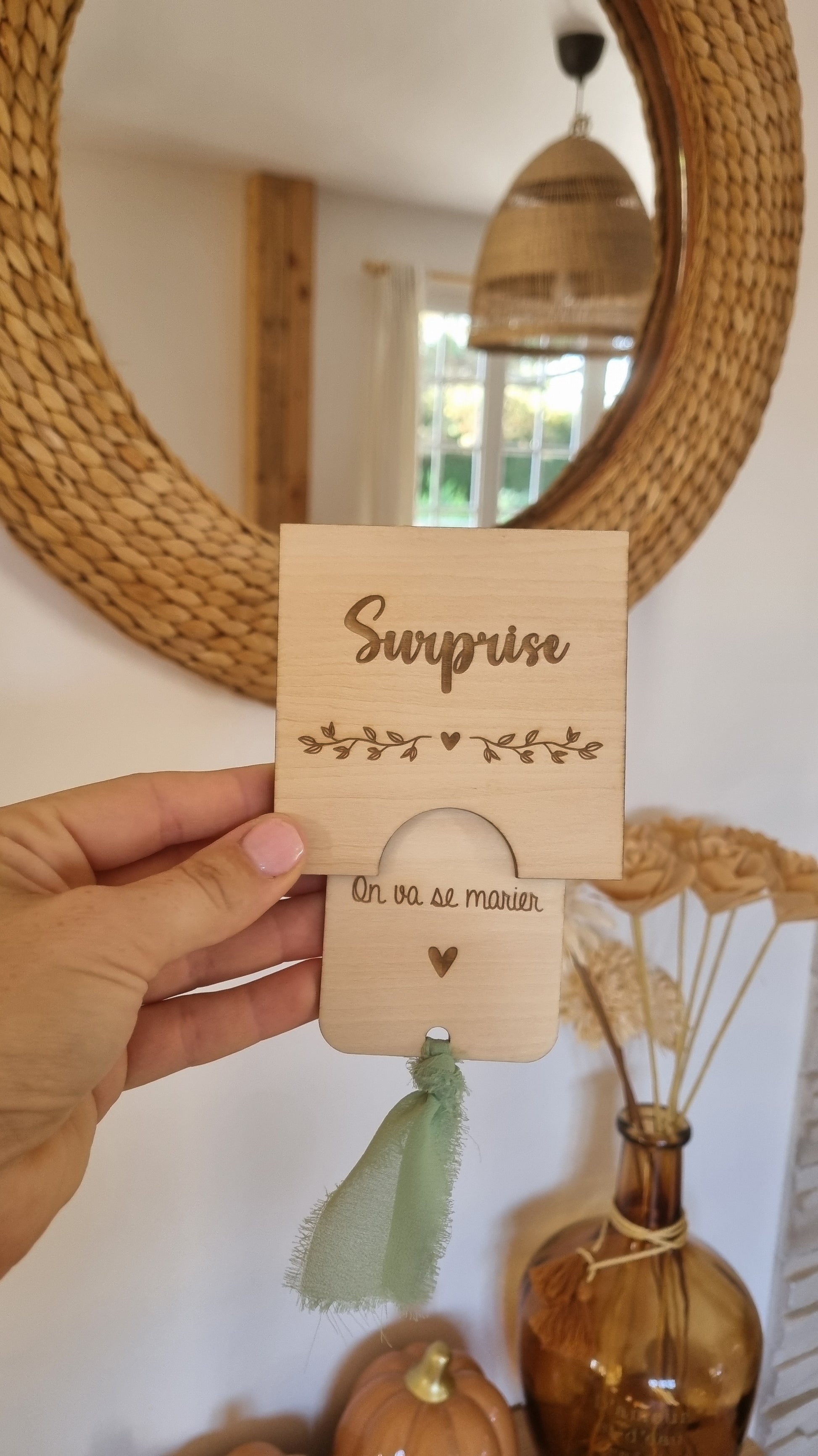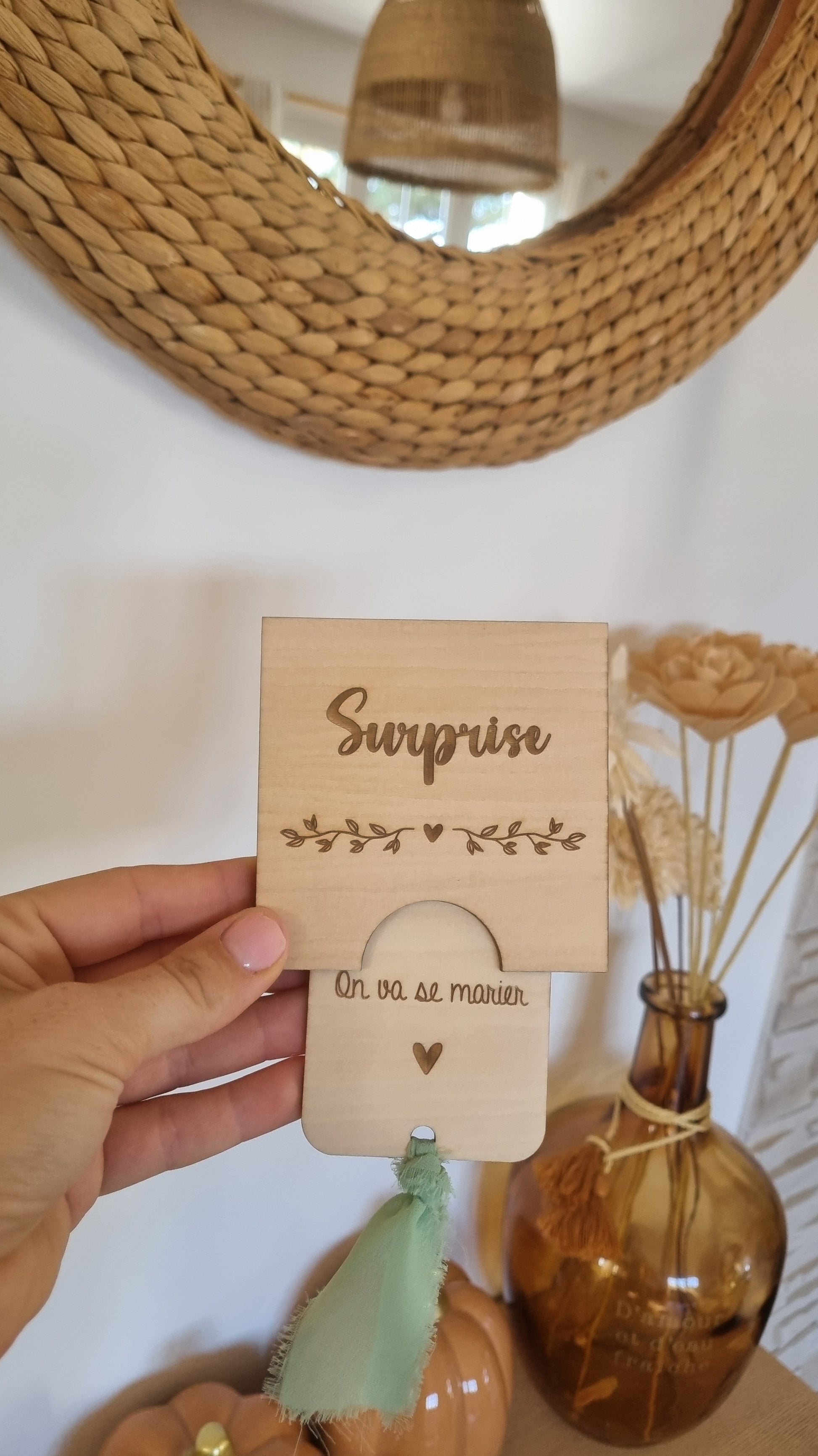 Découvrez nos annonces en bois personnalisées, pour révéler une grande nouvelle à vos proches : grossesse, demande de parrain ou marraine, ou encore annonce de mariage.....