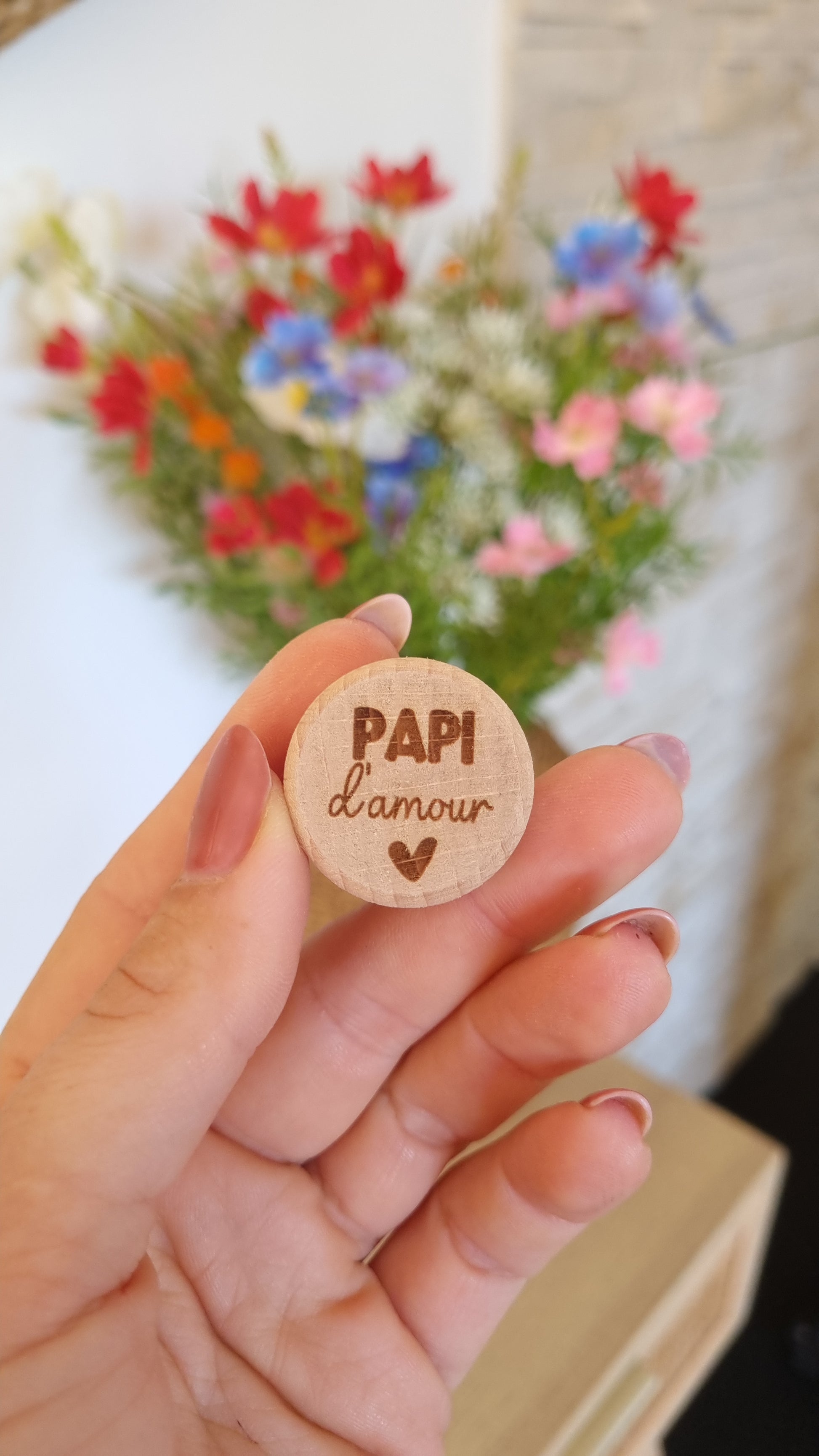 Offrez un cadeau original et plein de tendresse avec ce joli bouchon en bois gravé.