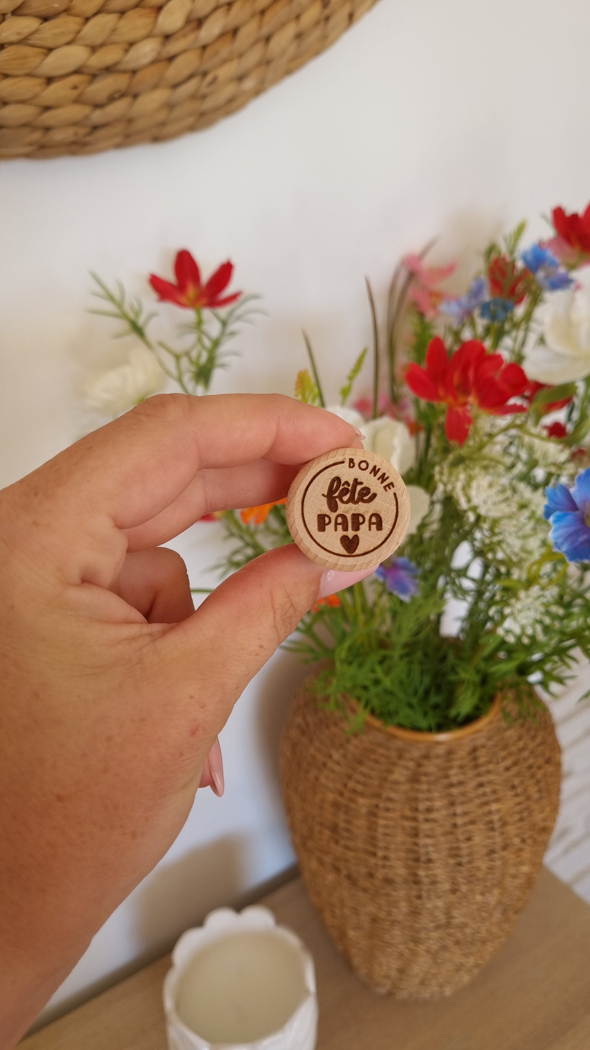 Offrez un cadeau original et plein de tendresse avec ce joli bouchon en bois gravé « Bonne fête Papa ». Une petite attention idéale pour faire plaisir à un papa amateur de bons crus 🍷