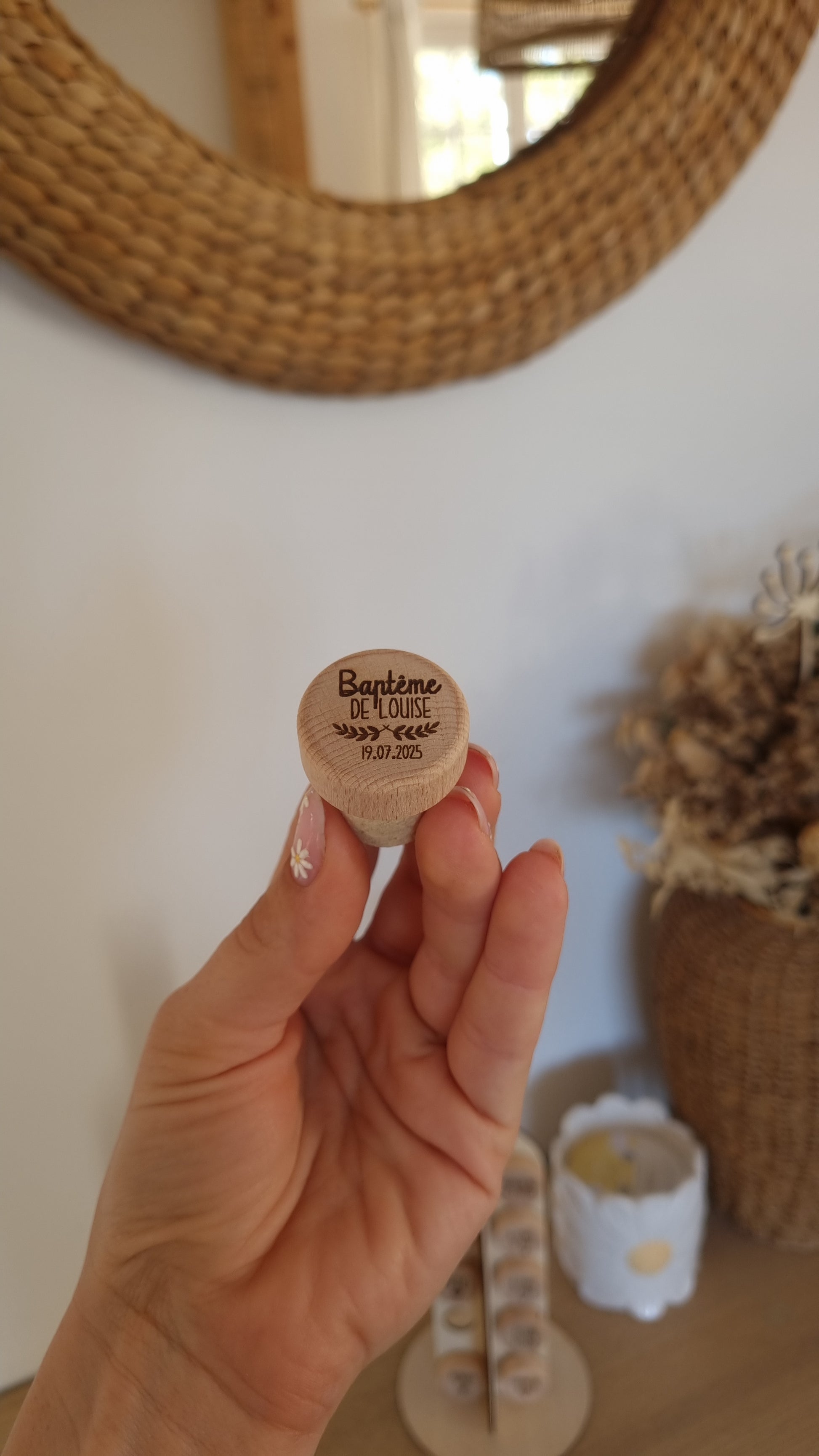Offrez à vos invités un souvenir utile et raffiné de votre grand jour avec ces bouchons de bouteille personnalisés. Gravés avec le prénom et la date du Baptême , ils sont à la fois pratiques et pleins de charme.