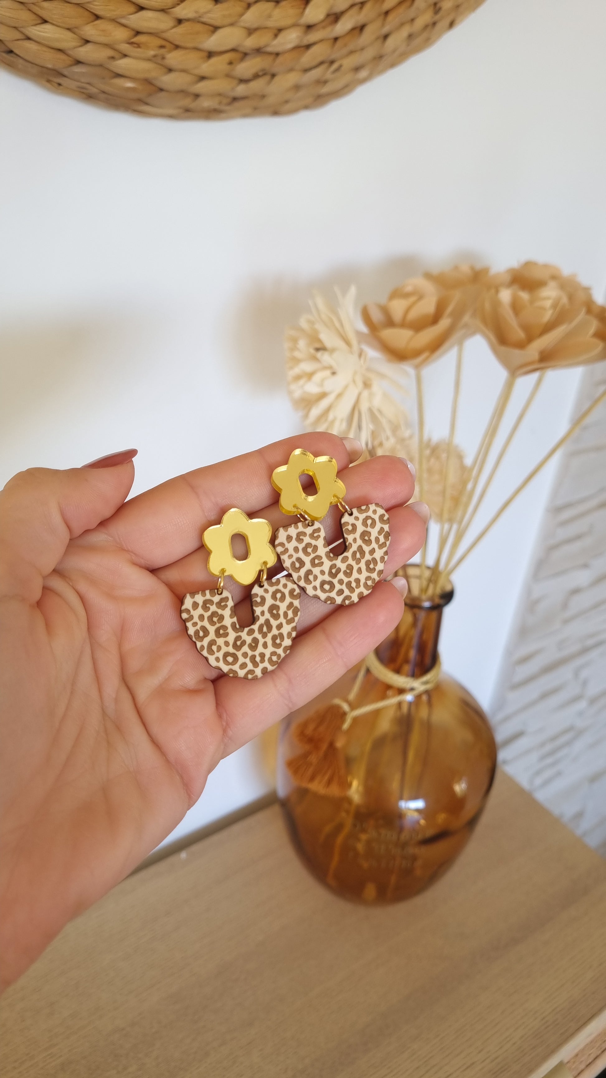 Boucles d’oreilles Léopard et or