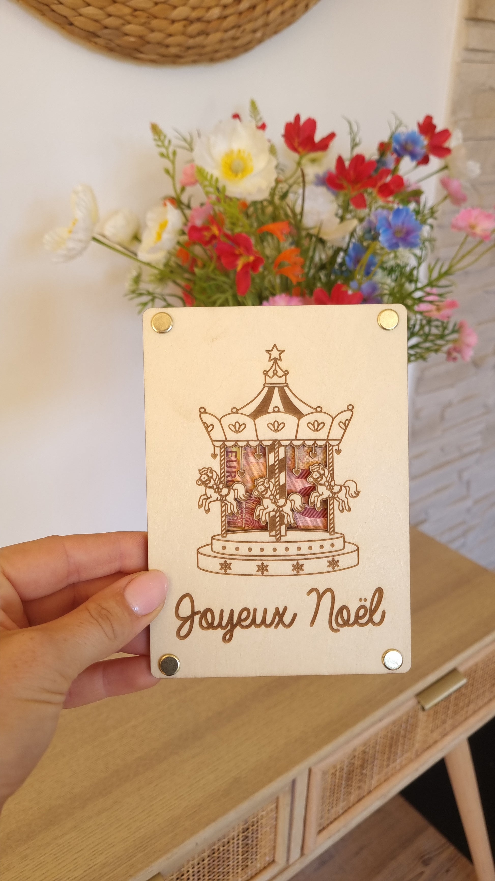 Découvrez notre carte en bois , conçue spécialement pour glisser un ou plusieurs billets à l'intérieur. Fini les enveloppes classiques. Quatre rivets métalliques dorés maintiennent solidement la structure. Vendu sans billets