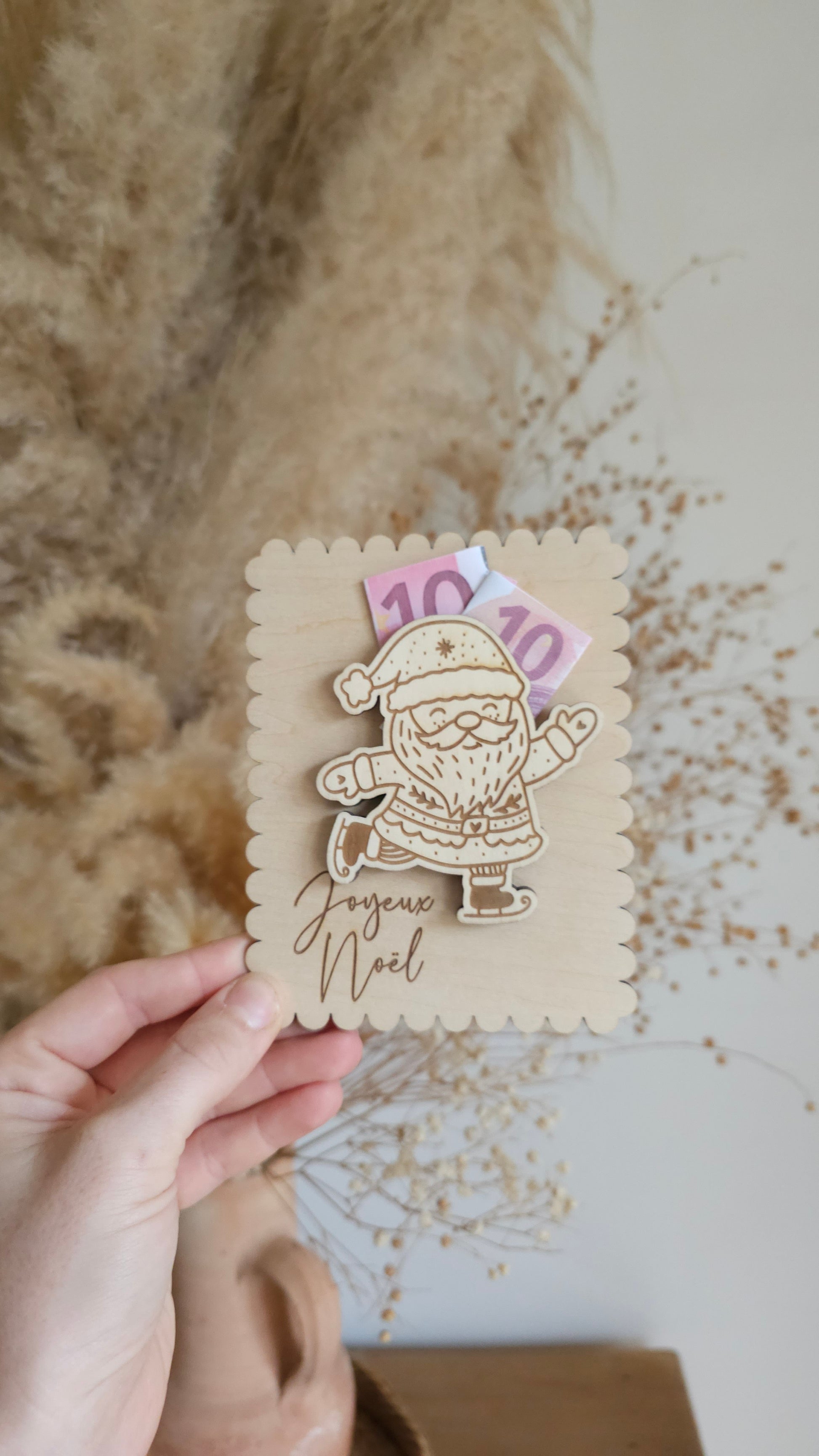 Découvrez notre carte en bois , conçue spécialement pour glisser un ou plusieurs billets. Fini les enveloppes classiques. Vendu sans billets