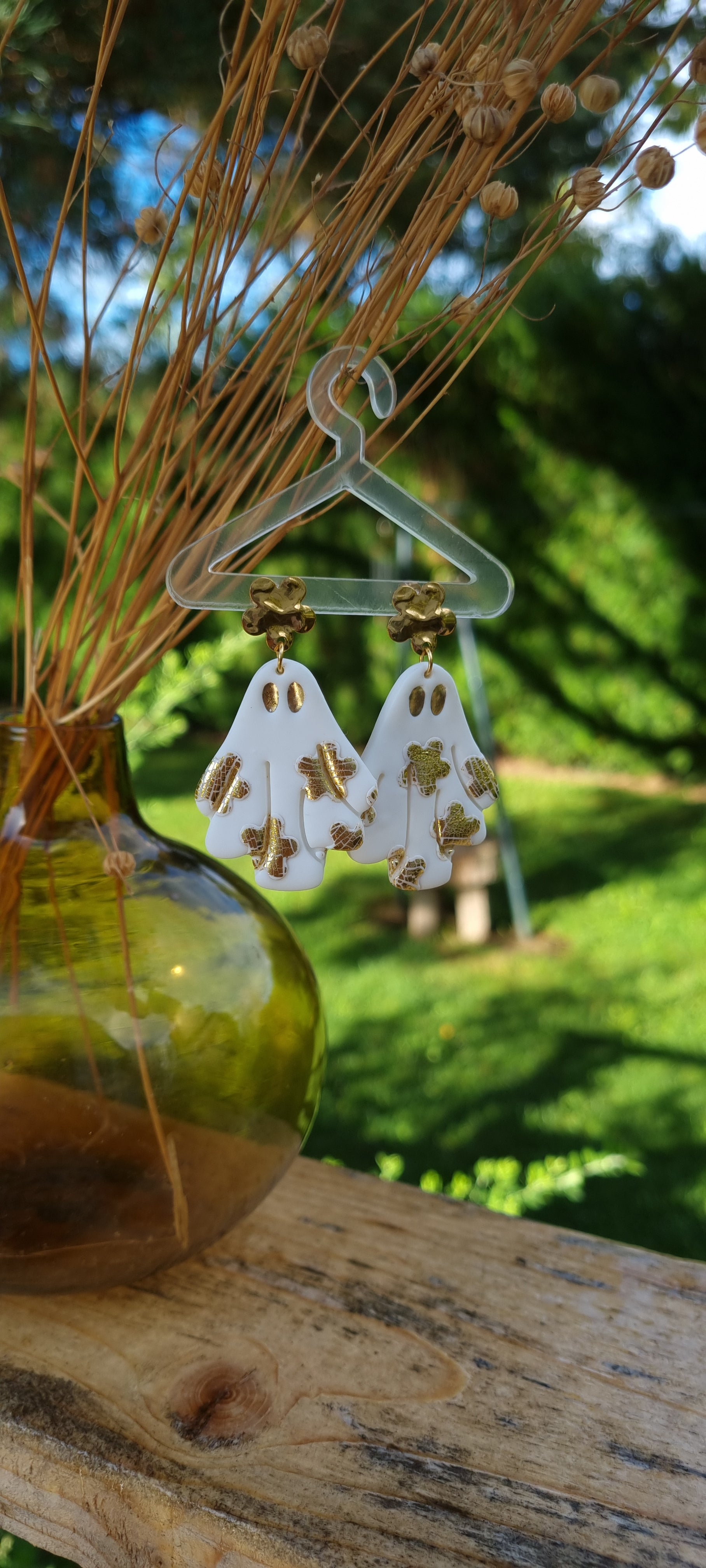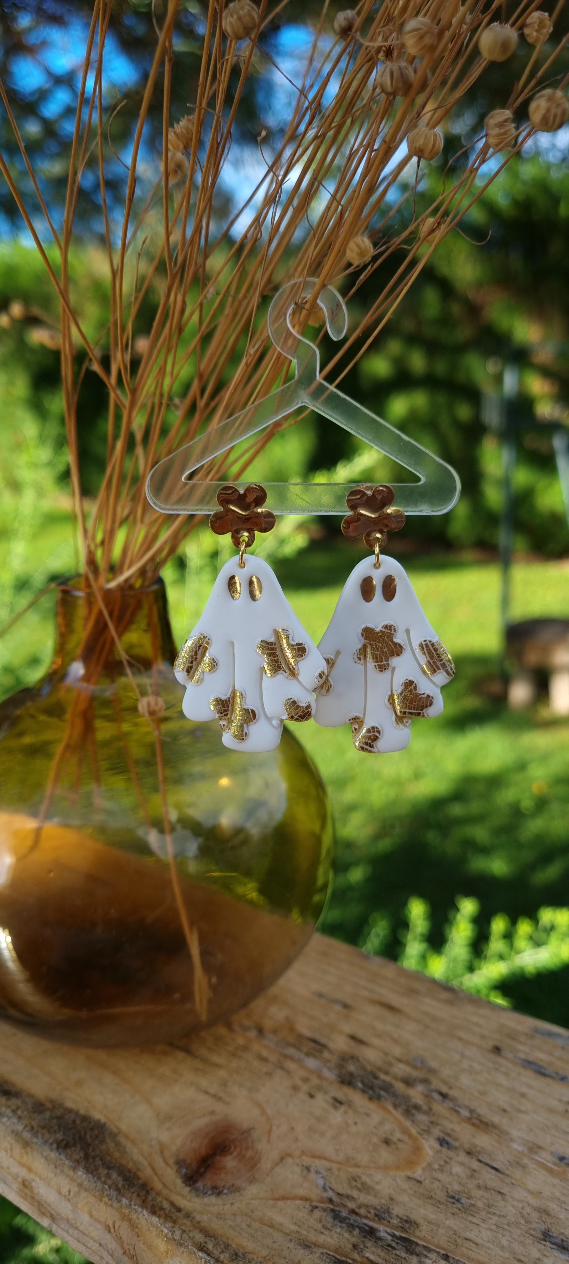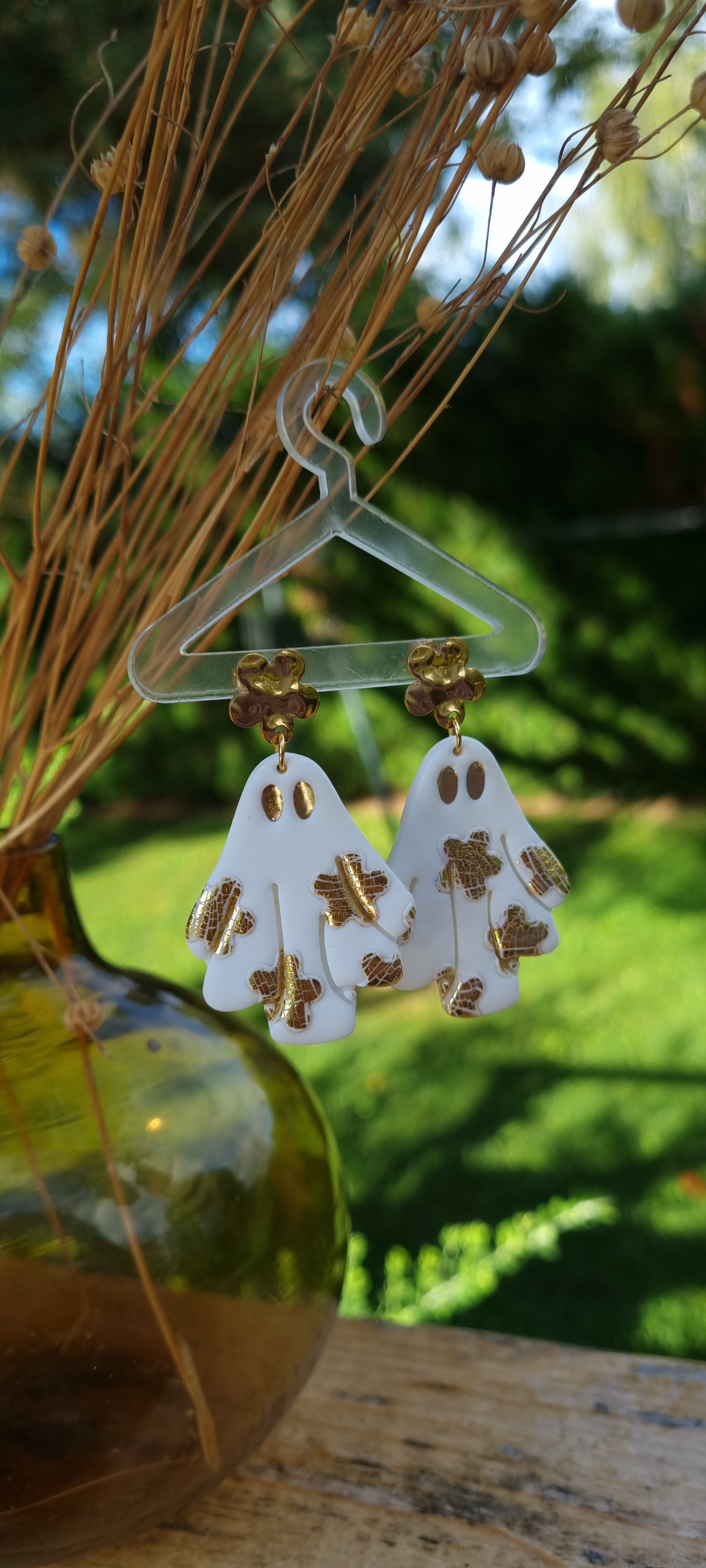 Boo ! Ne vous inquiétez pas, ces fantômes se balançant sur une puce en forme de fleur en acier inoxydable ne viennent pas pour vous effrayer, mais pour vous faire fondre de mignonnerie !