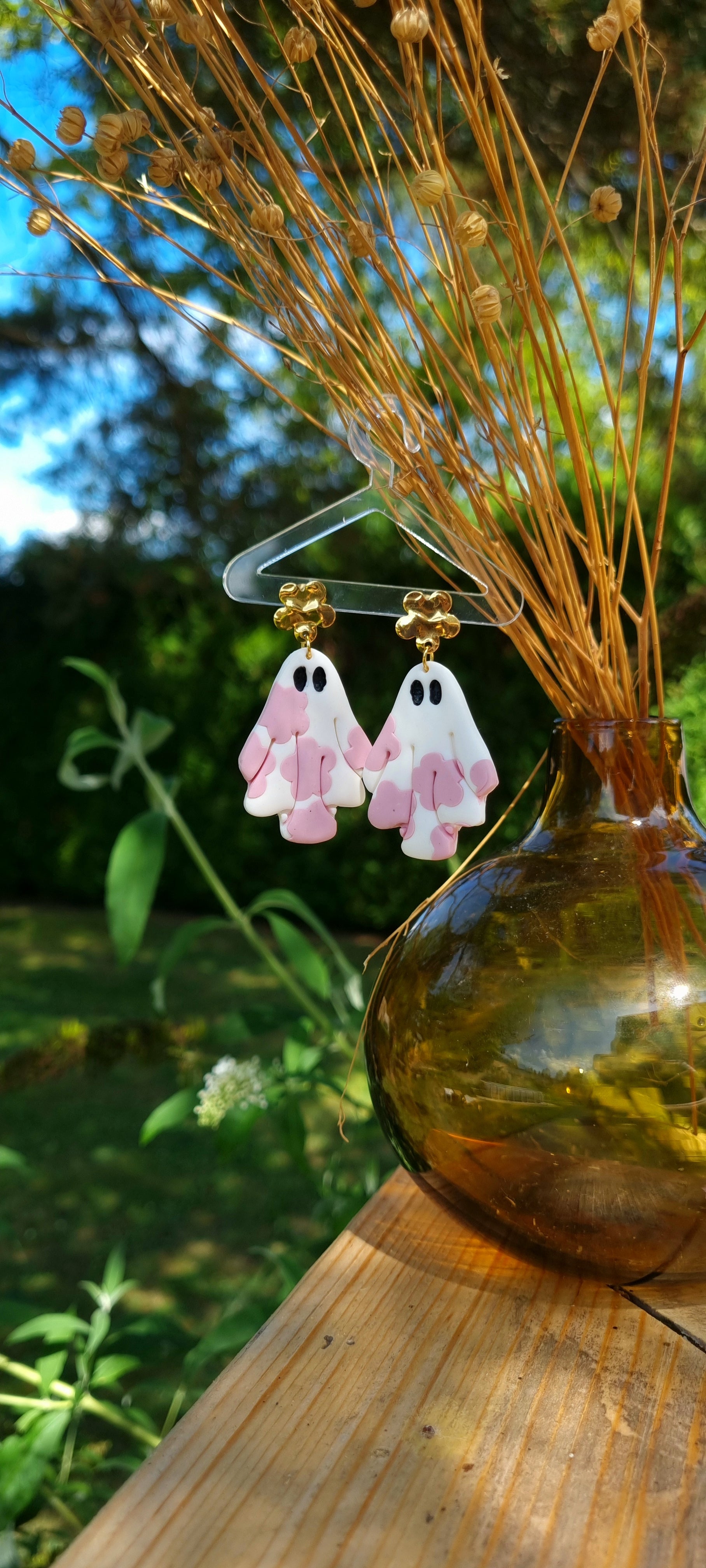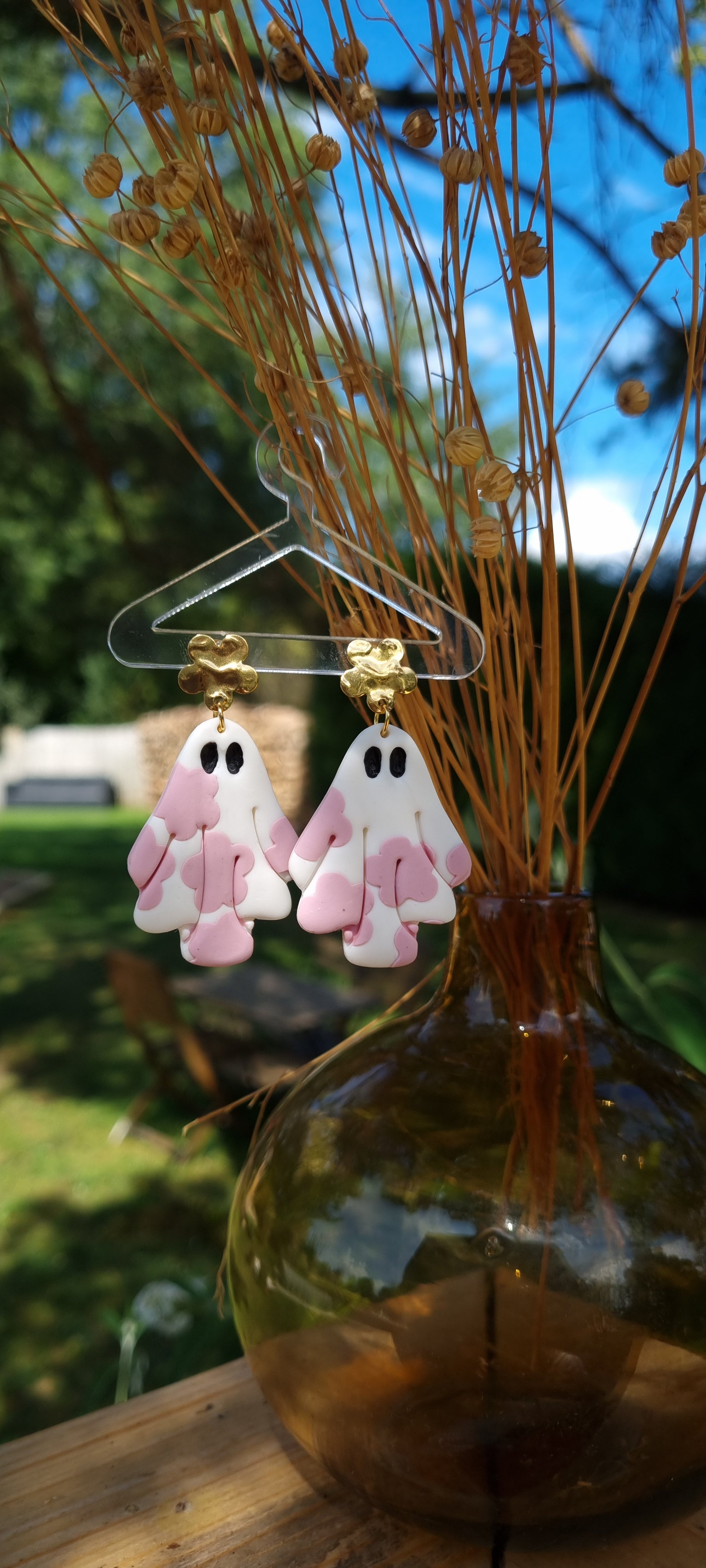 Boo ! Ne vous inquiétez pas, ces fantômes se balançant sur une puce en forme de fleur en acier inoxydable ne viennent pas pour vous effrayer, mais pour vous faire fondre de mignonnerie !