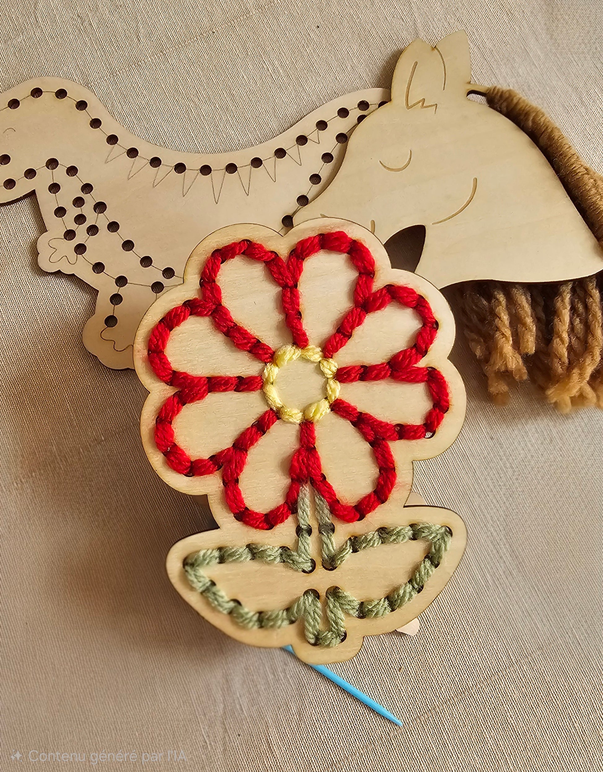 Ce support en bois vous permet de réaliser une magnifique fleur brodée, une activité créative et ludique parfaite pour un moment de partage en famille.
