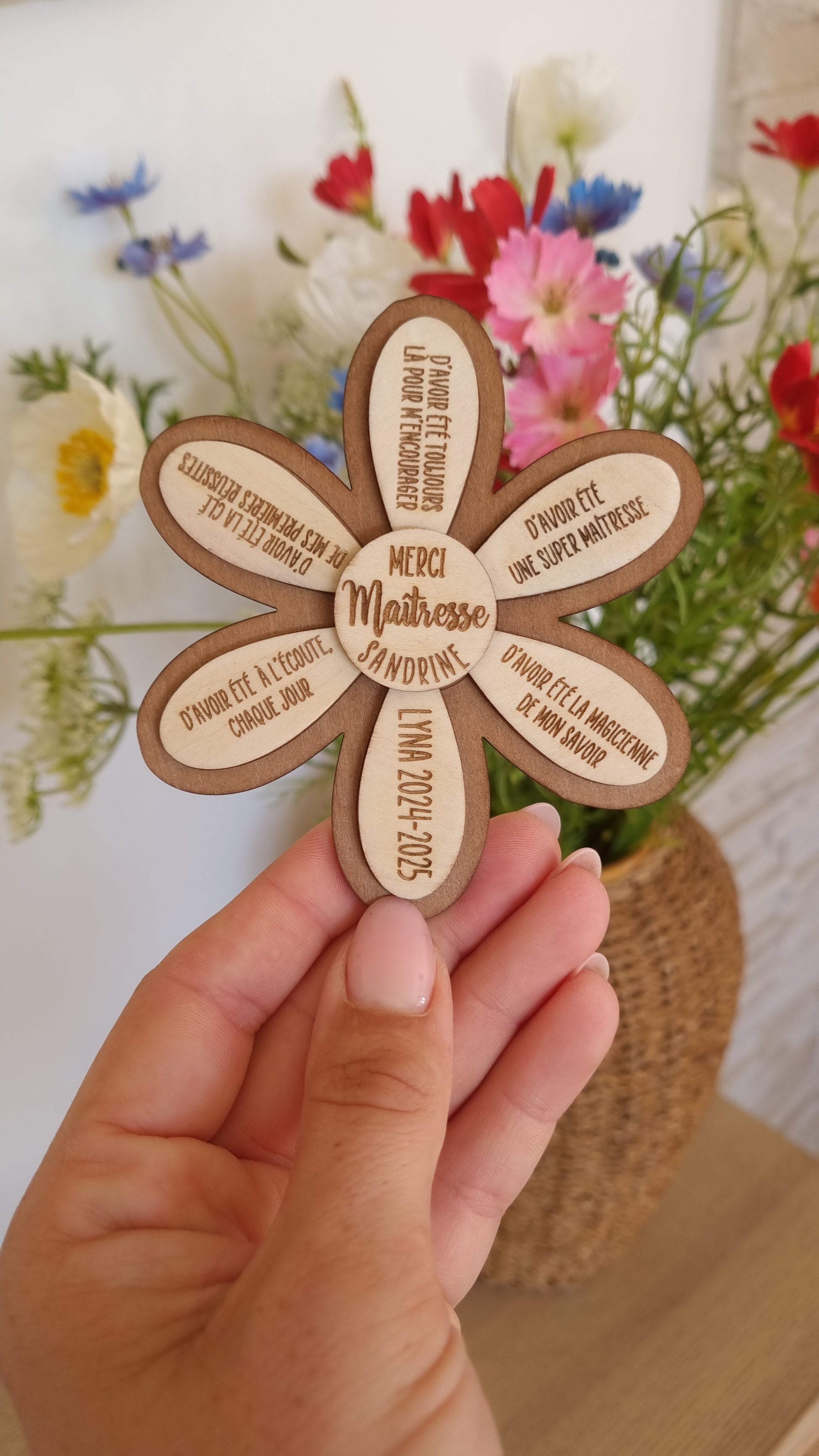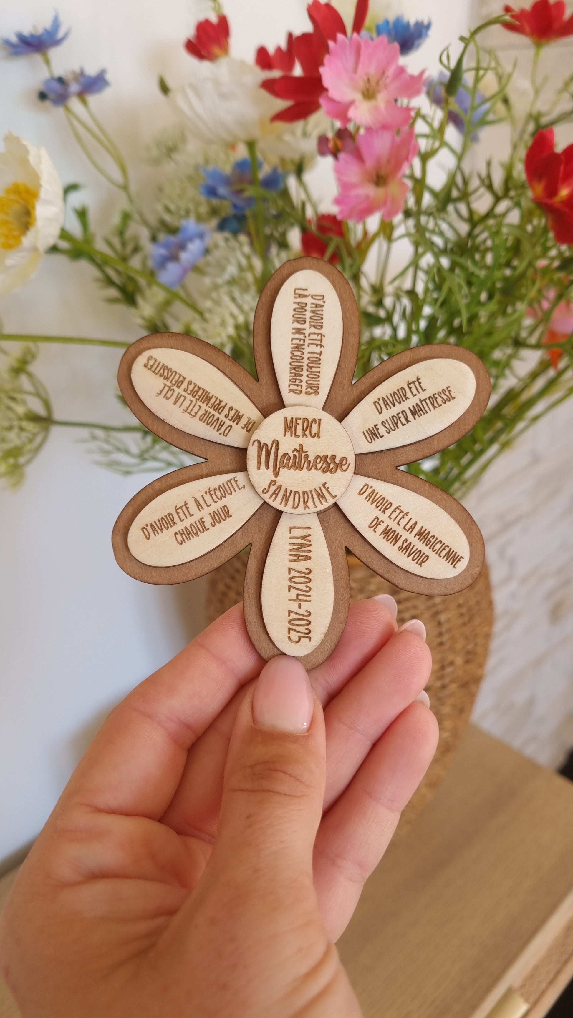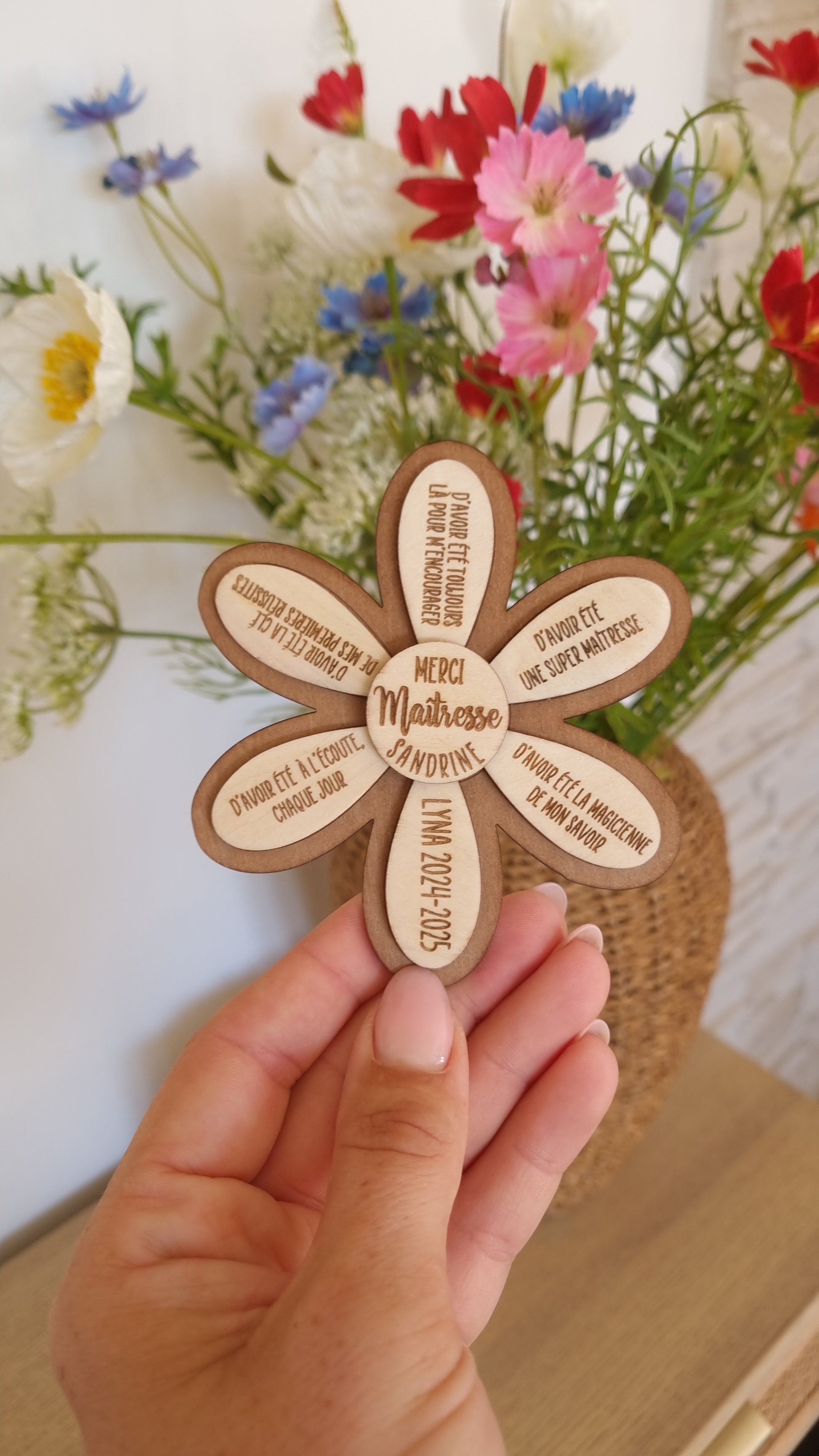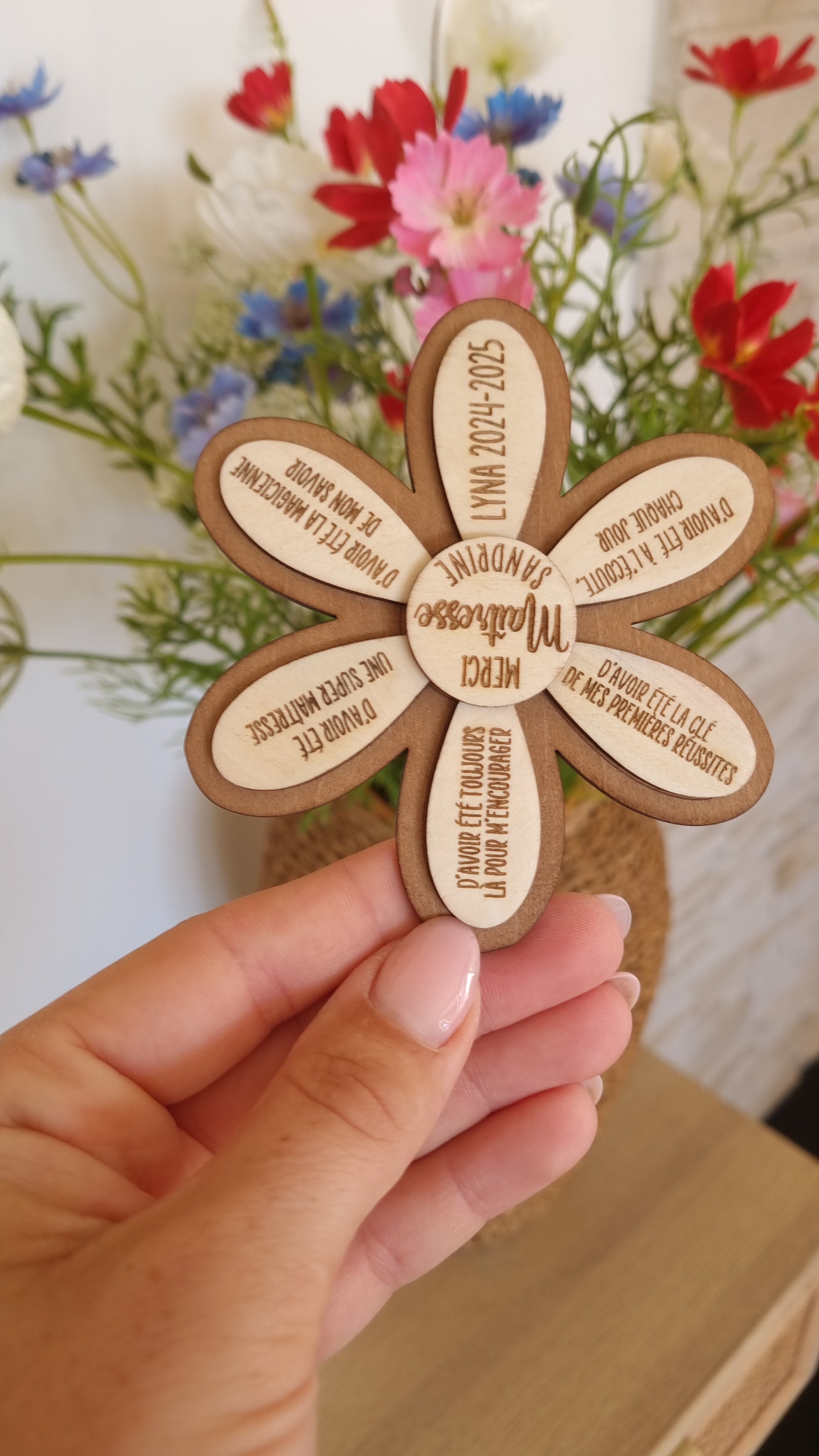 Nos aimants en bois personnalisables sont le cadeau parfait pour remercier la maîtresse (ou le maître !) avec le cœur.