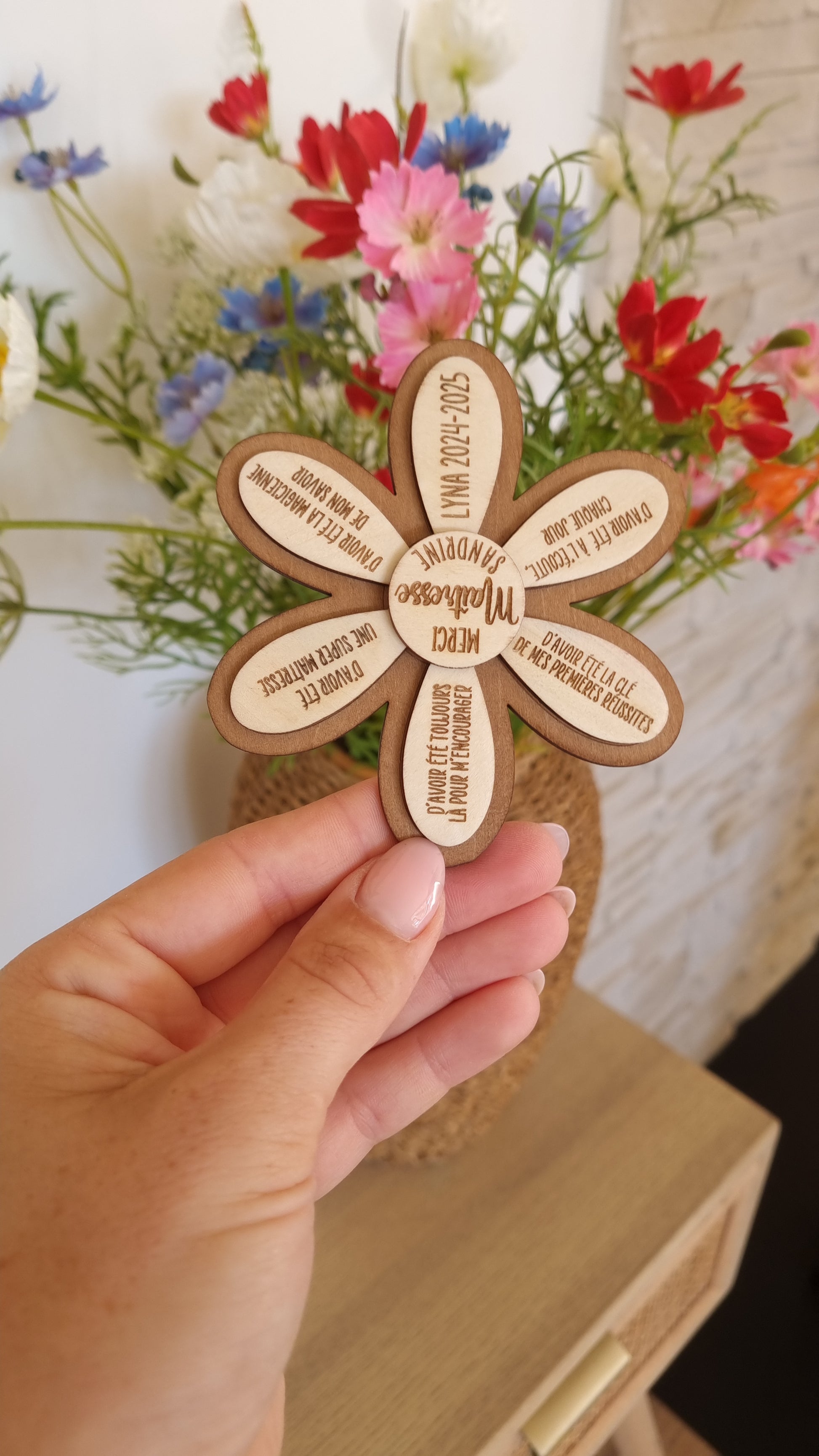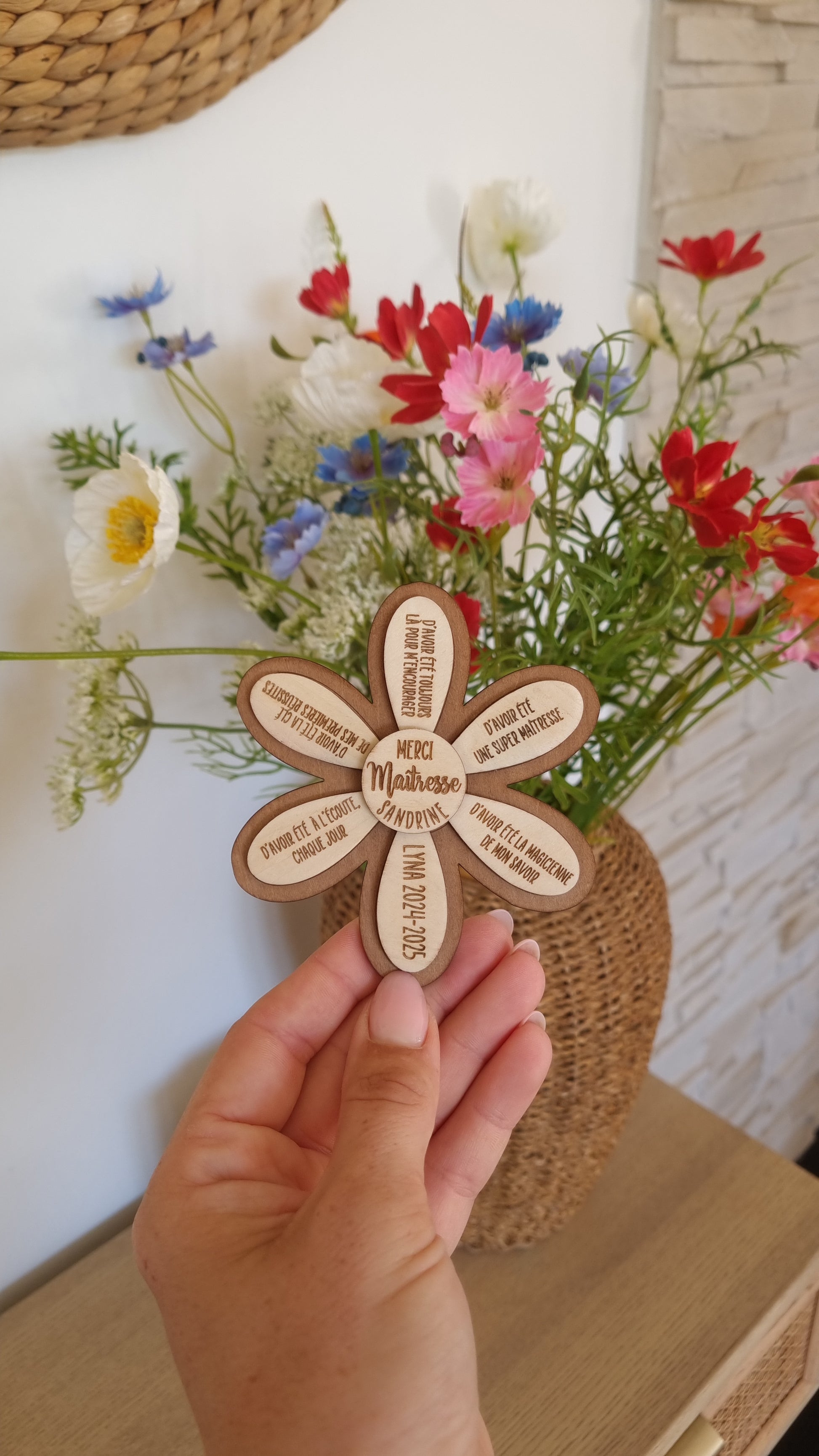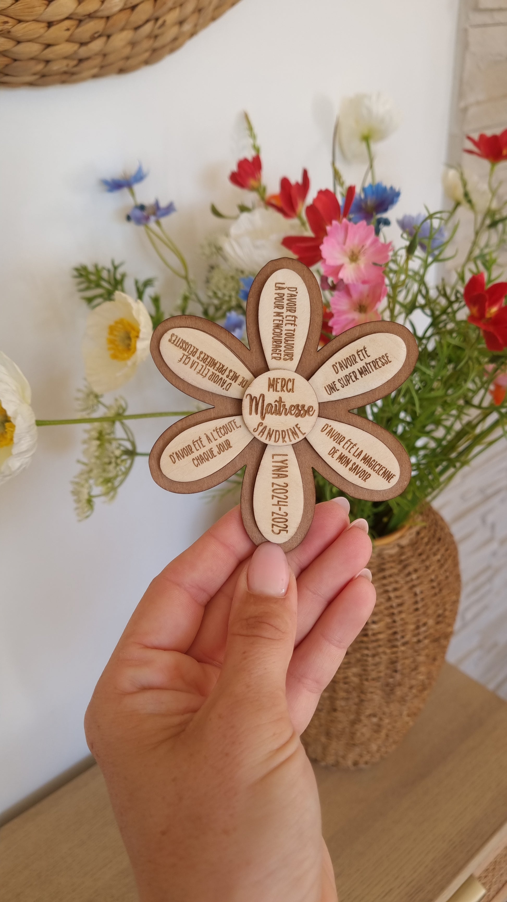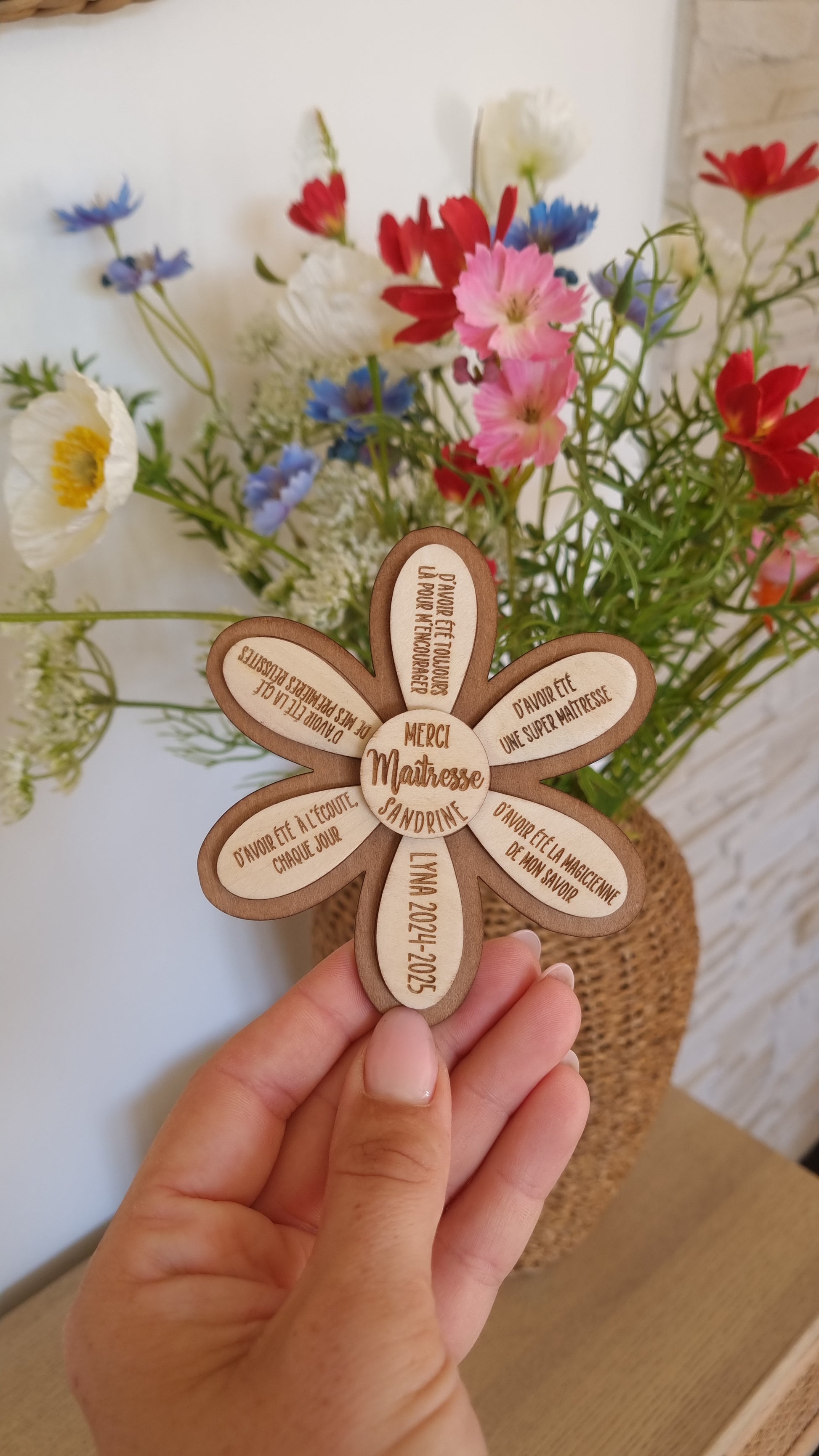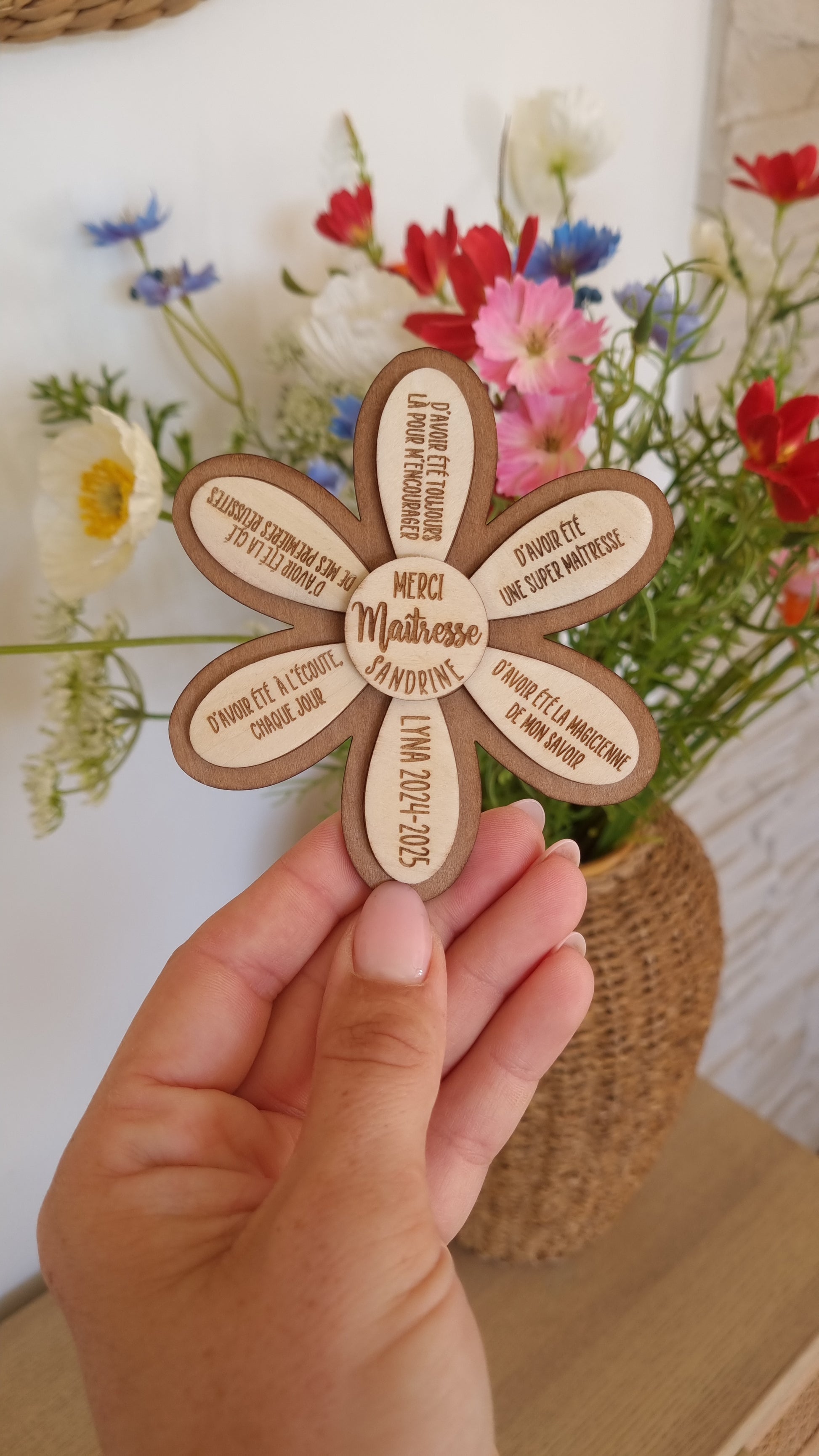 Nos aimants en bois personnalisables sont le cadeau parfait pour remercier la maîtresse (ou le maître !) avec le cœur.