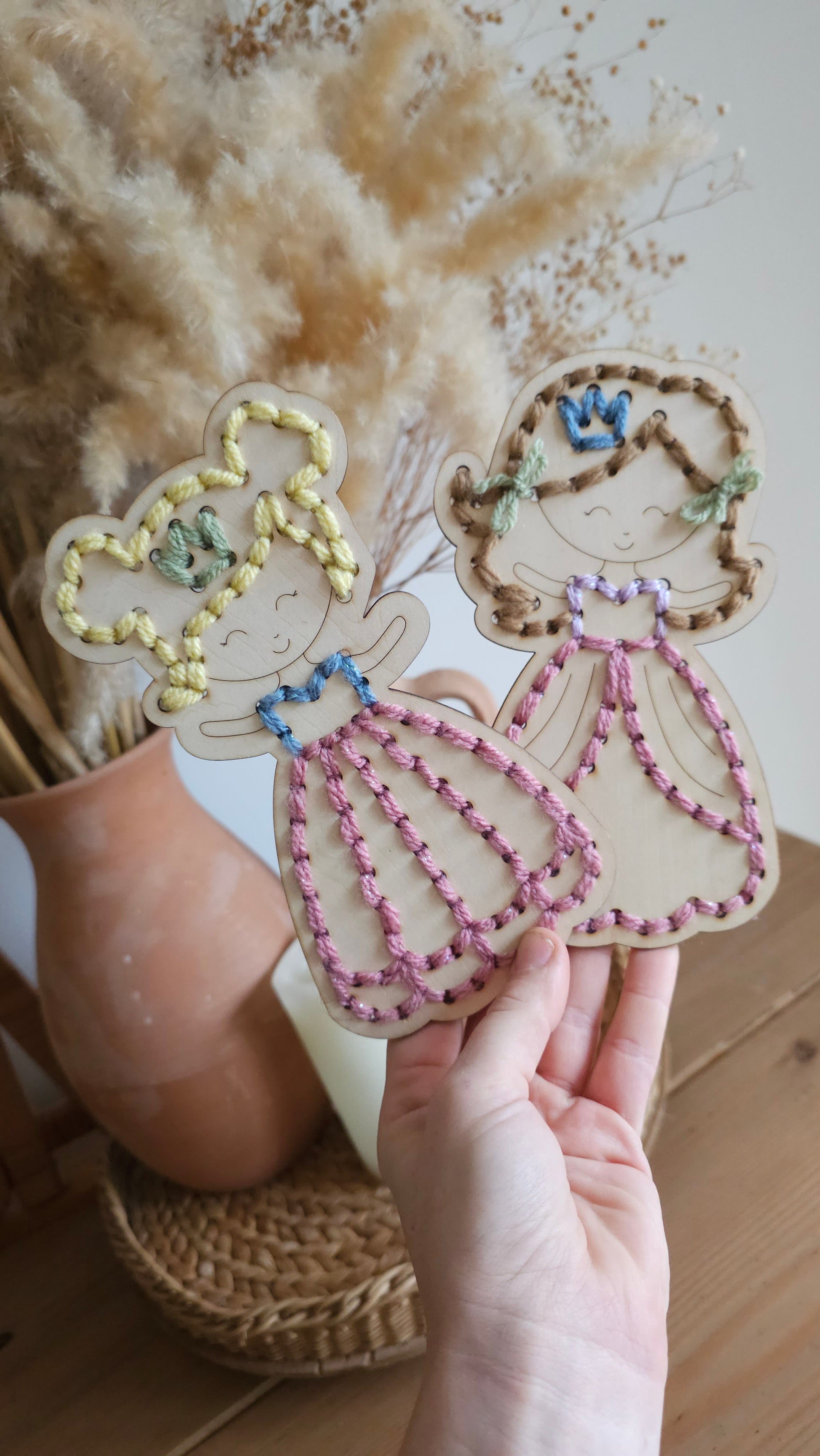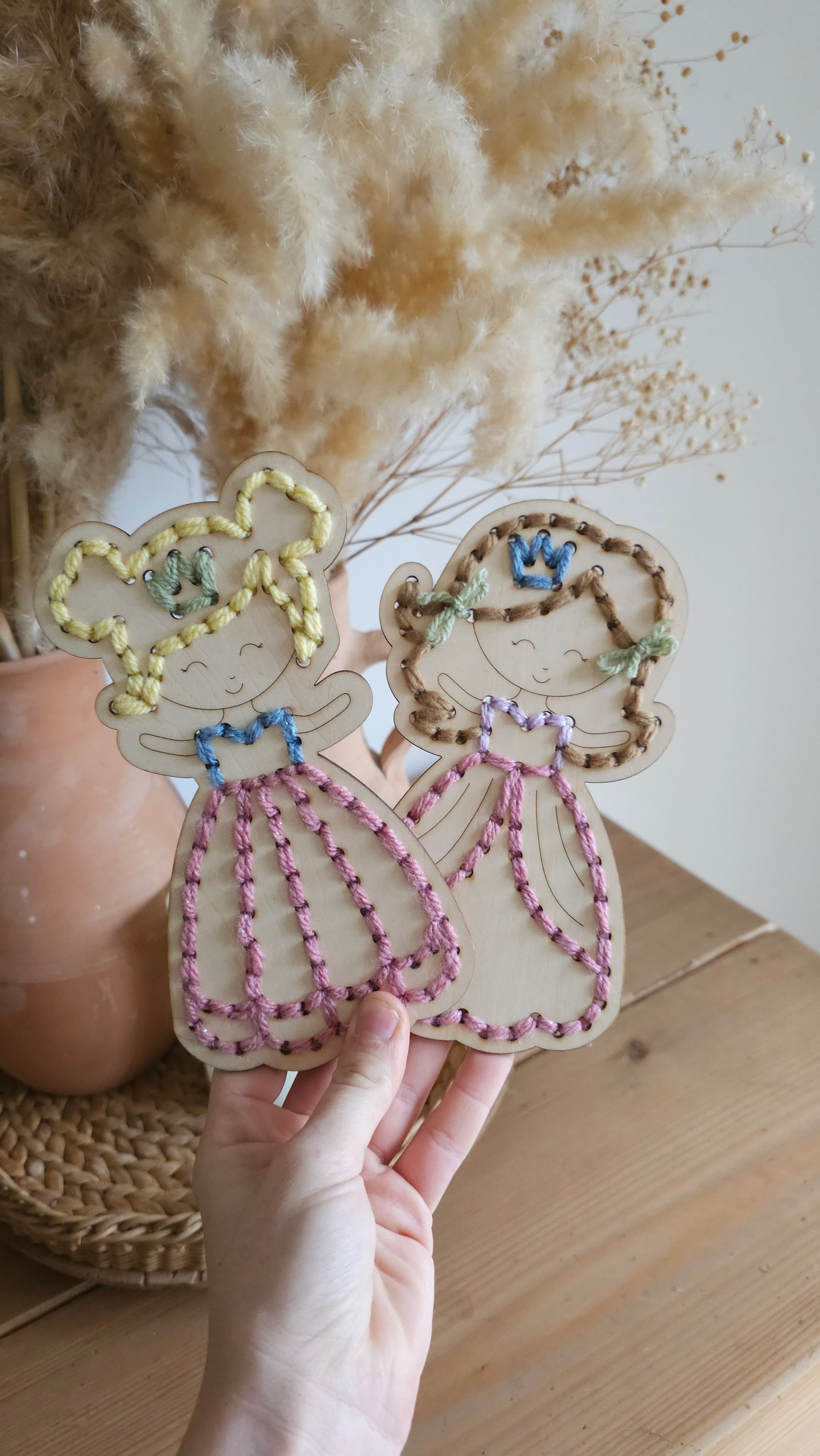 - 1 support en bois en forme de princesse 2 modèles disponibles (14 cm de haut)
