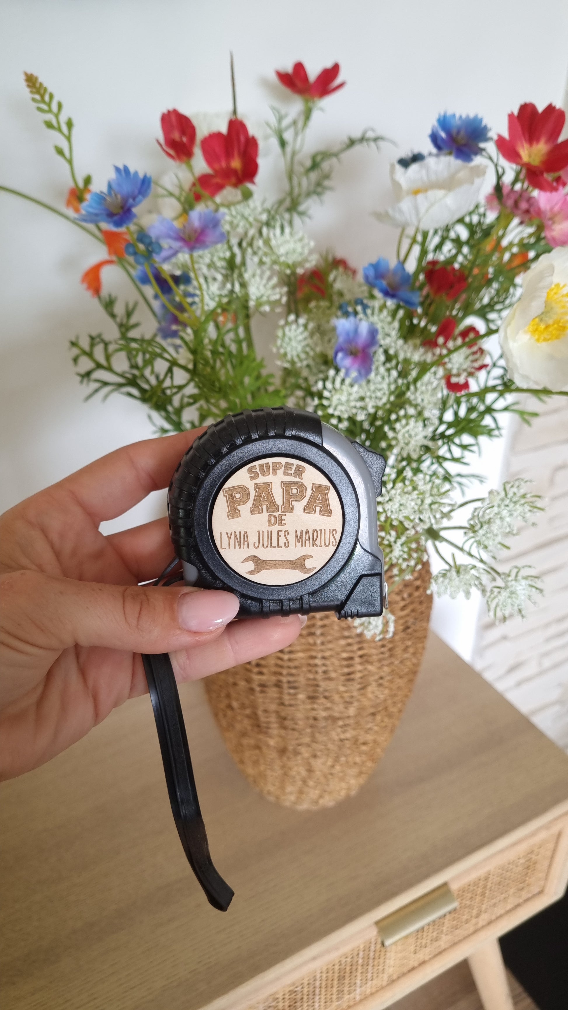 Compact, pratique, et surtout personnalisable avec un ou des prénoms ce mètre ruban devient un véritable souvenir à garder dans la boîte à outils ou à emporter partout.