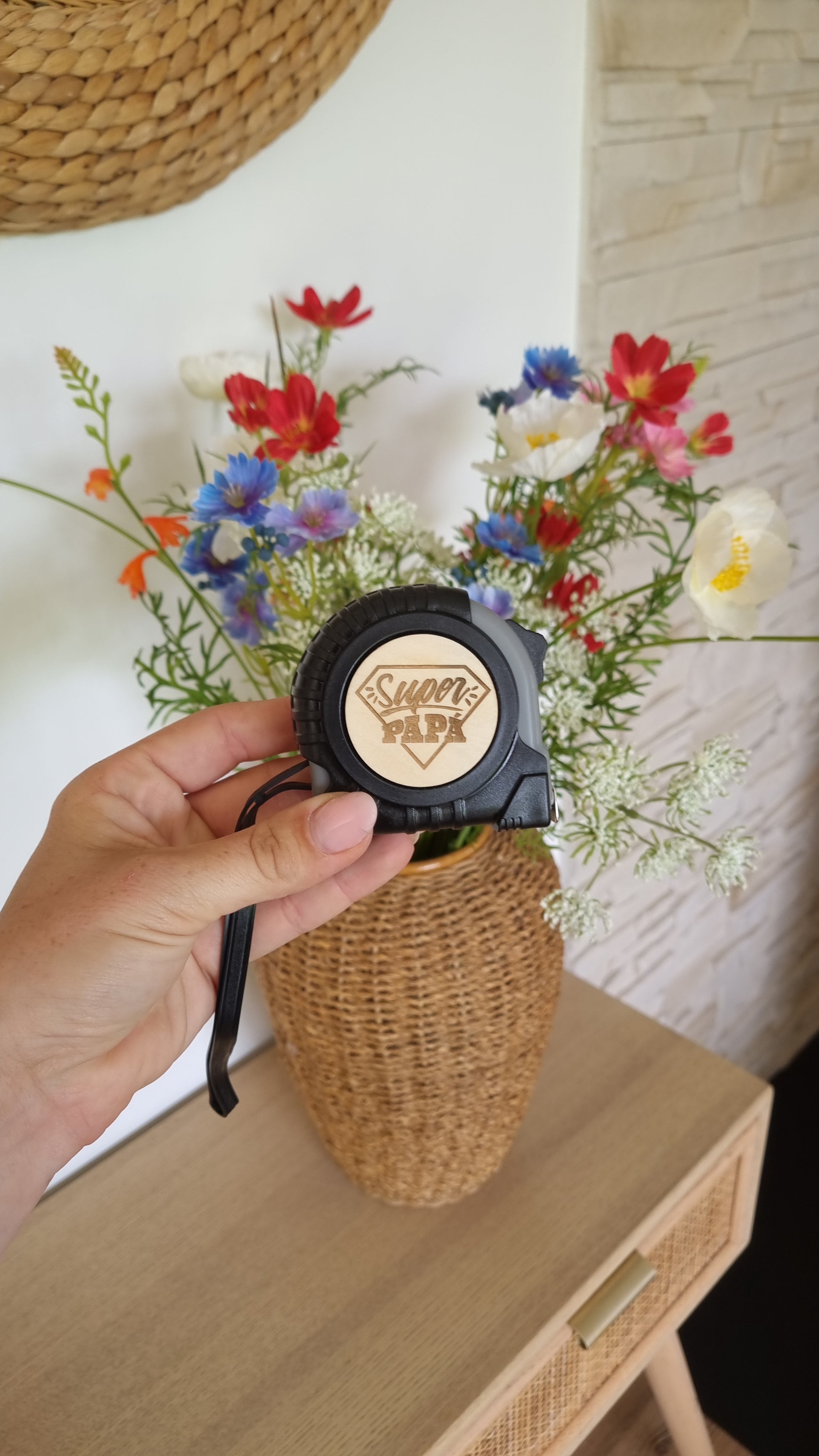 Vous cherchez une idée cadeau utile, Ne cherchez plus ! Ce mètre ruban personnalisé est parfait pour un papa, un papi, un tonton, ou même une maman bricoleuse.