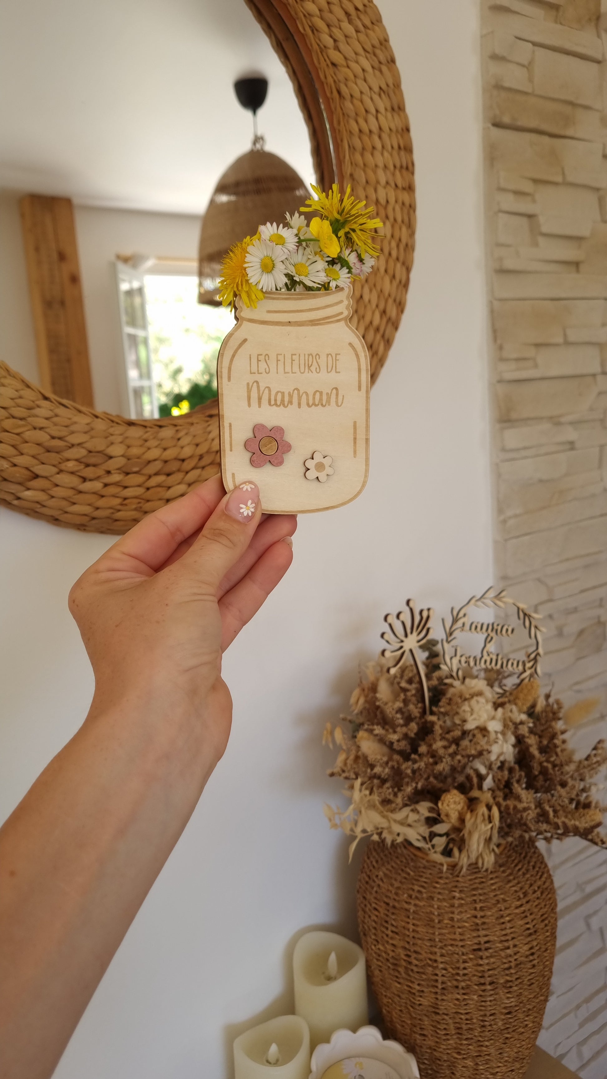 Mini jarre en bois personnalisée – Le bouquet cueilli par les enfants