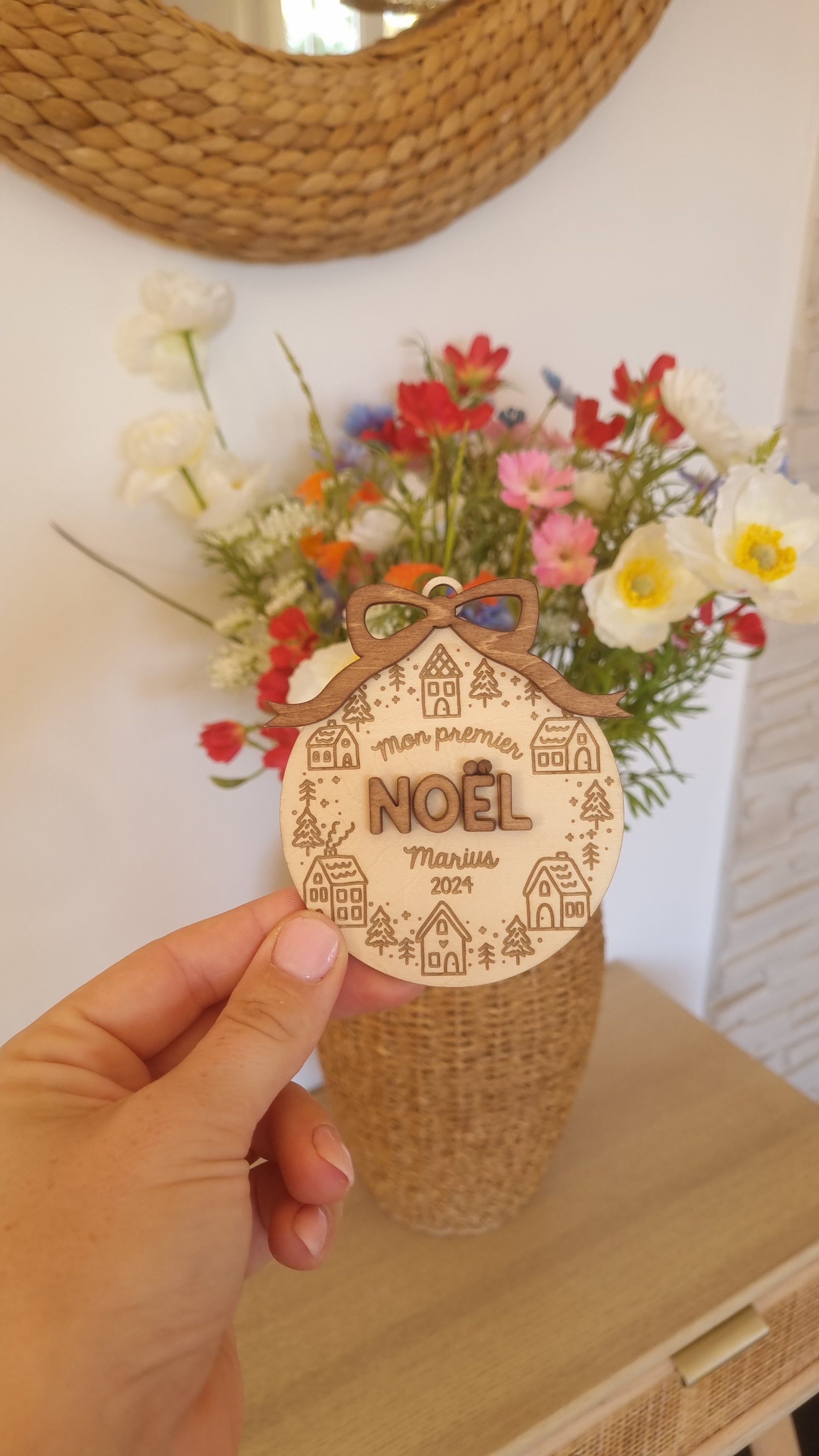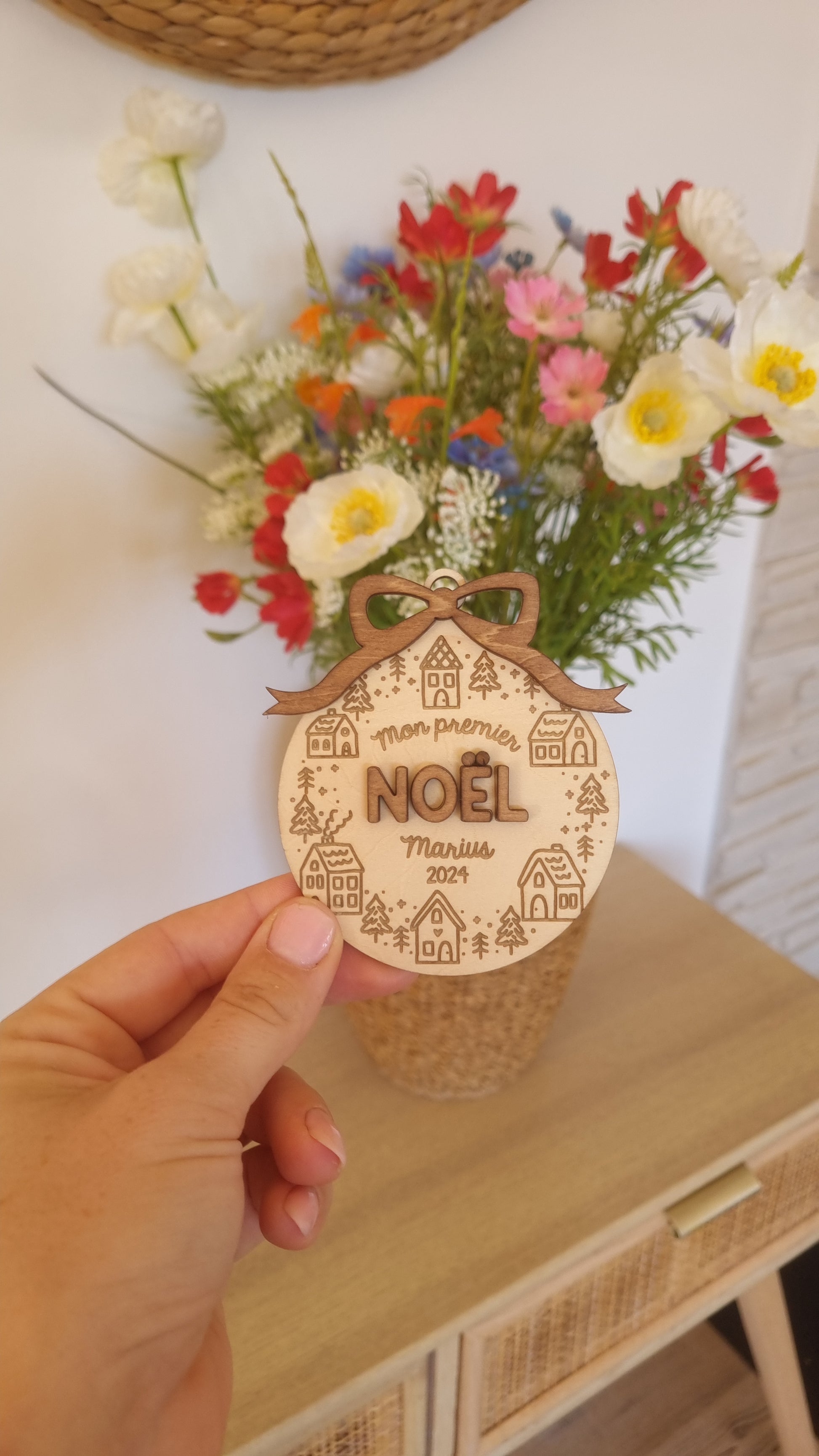 Apportez une touche douce et féérique à votre sapin avec cette boule de Noël en bois gravée
