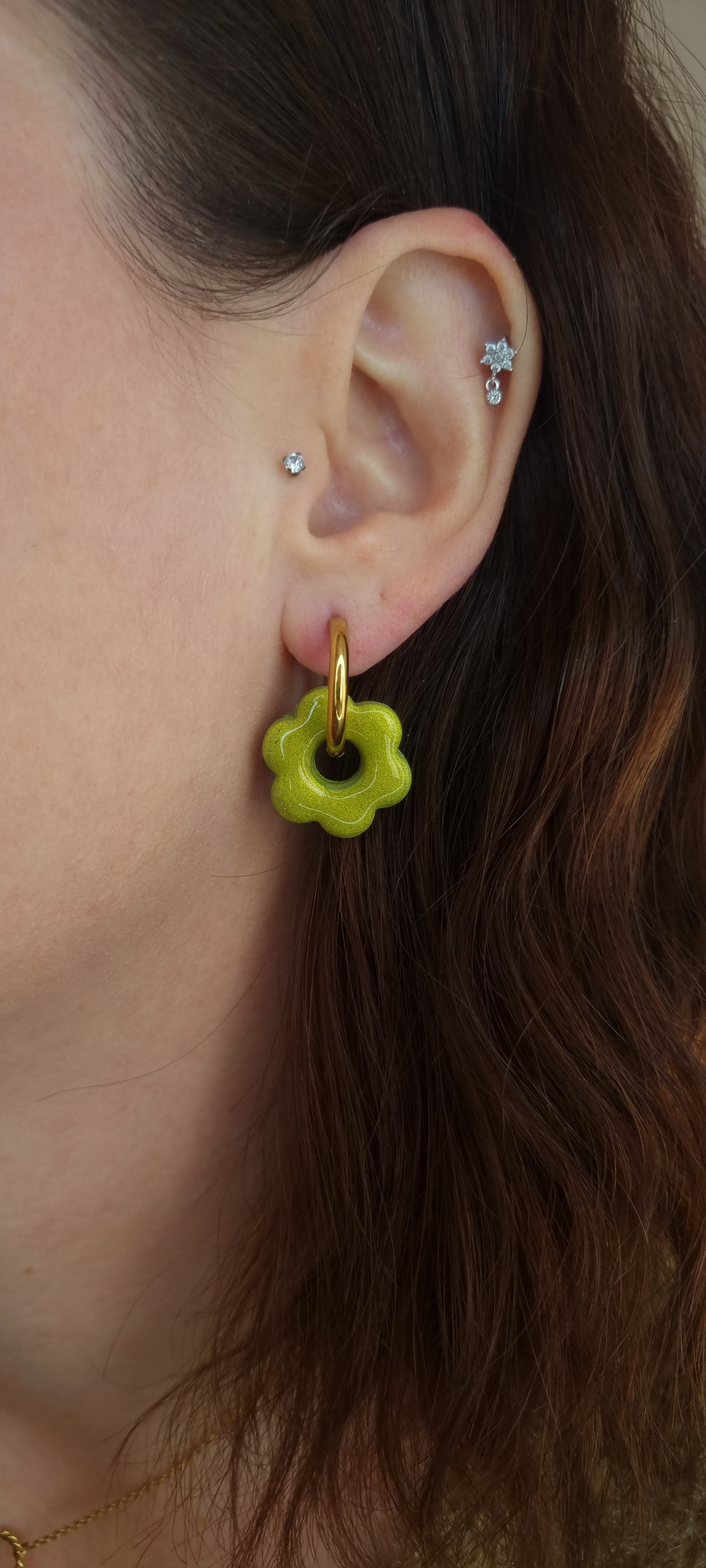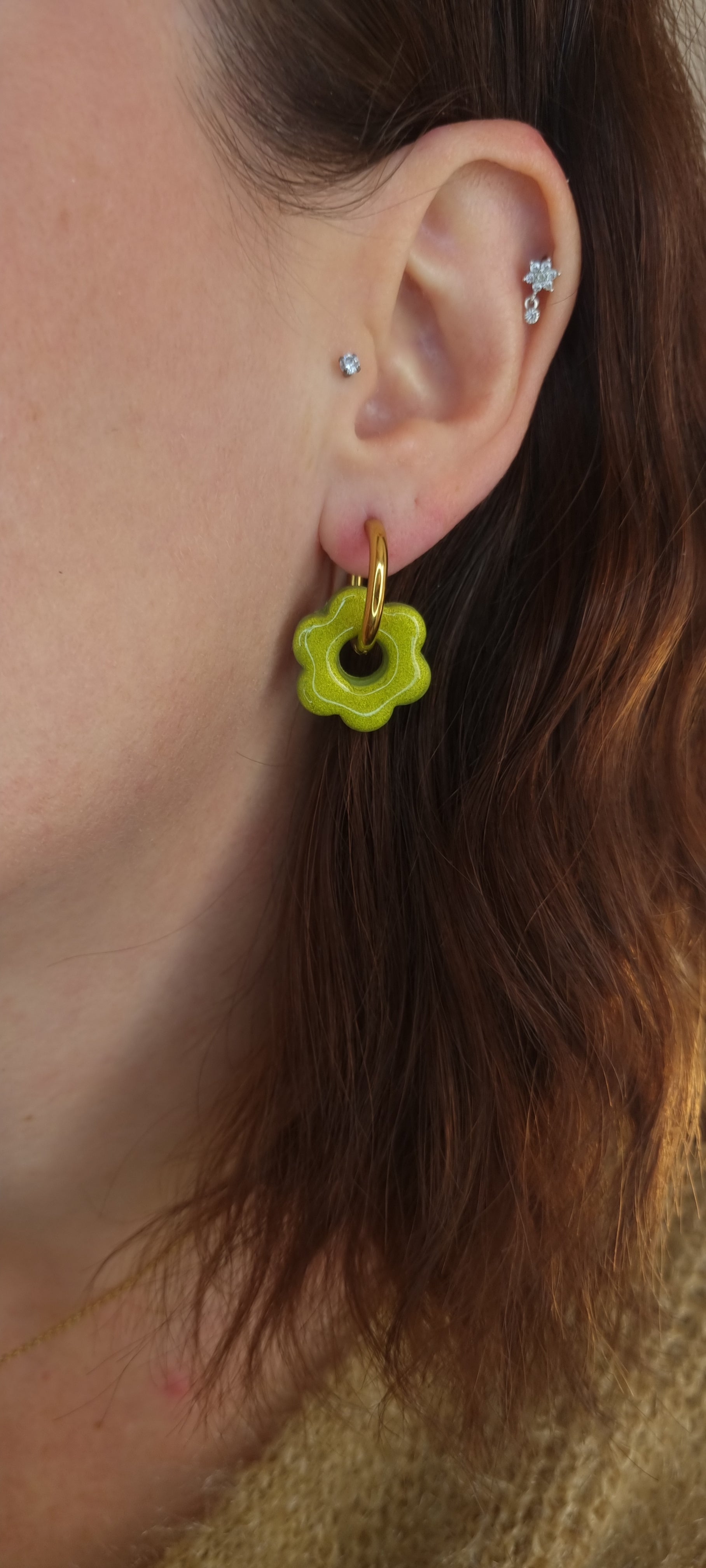 Pampilles seules ou montées sur créoles en acier inoxydable, coloris ou argent au choix