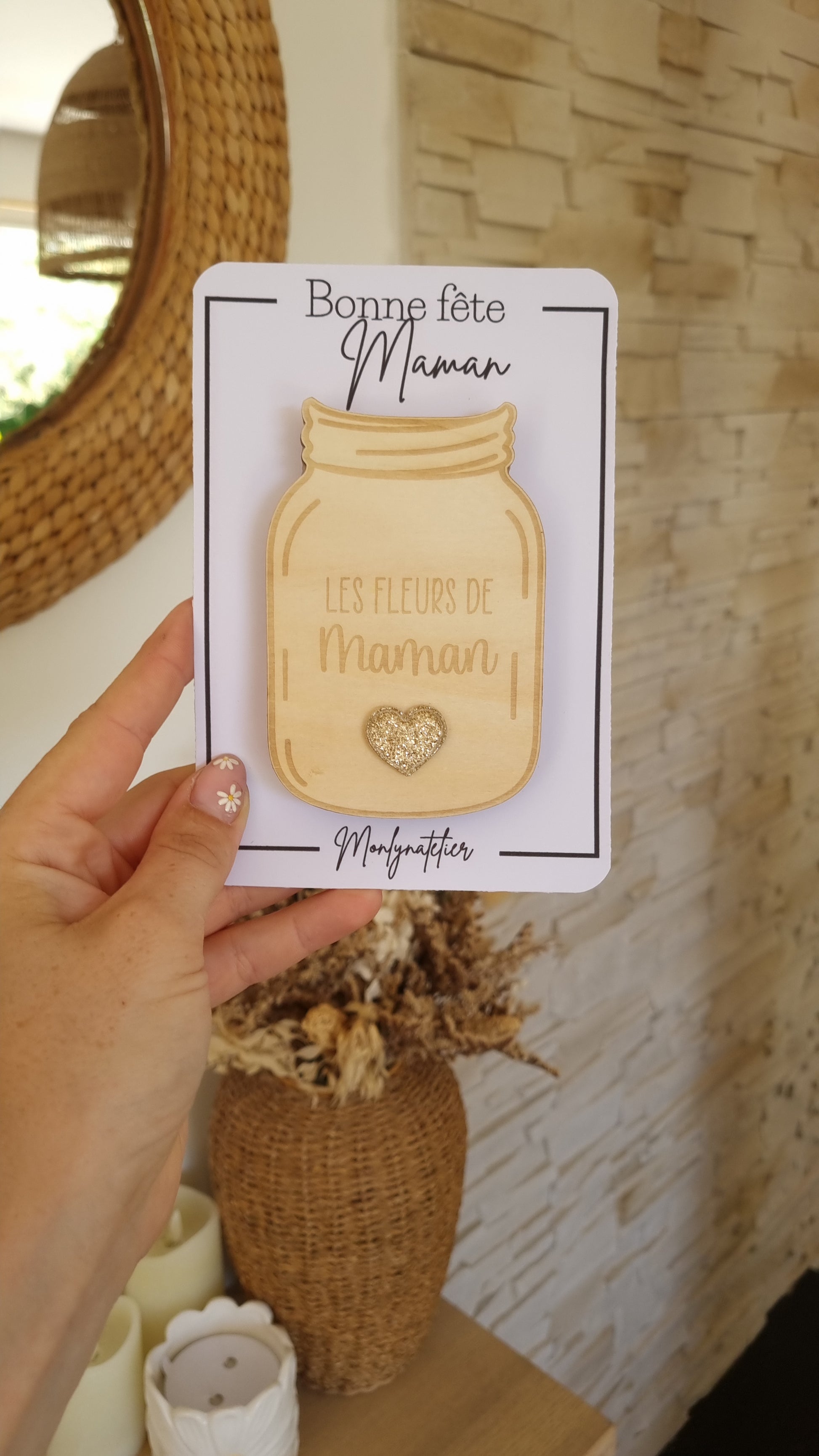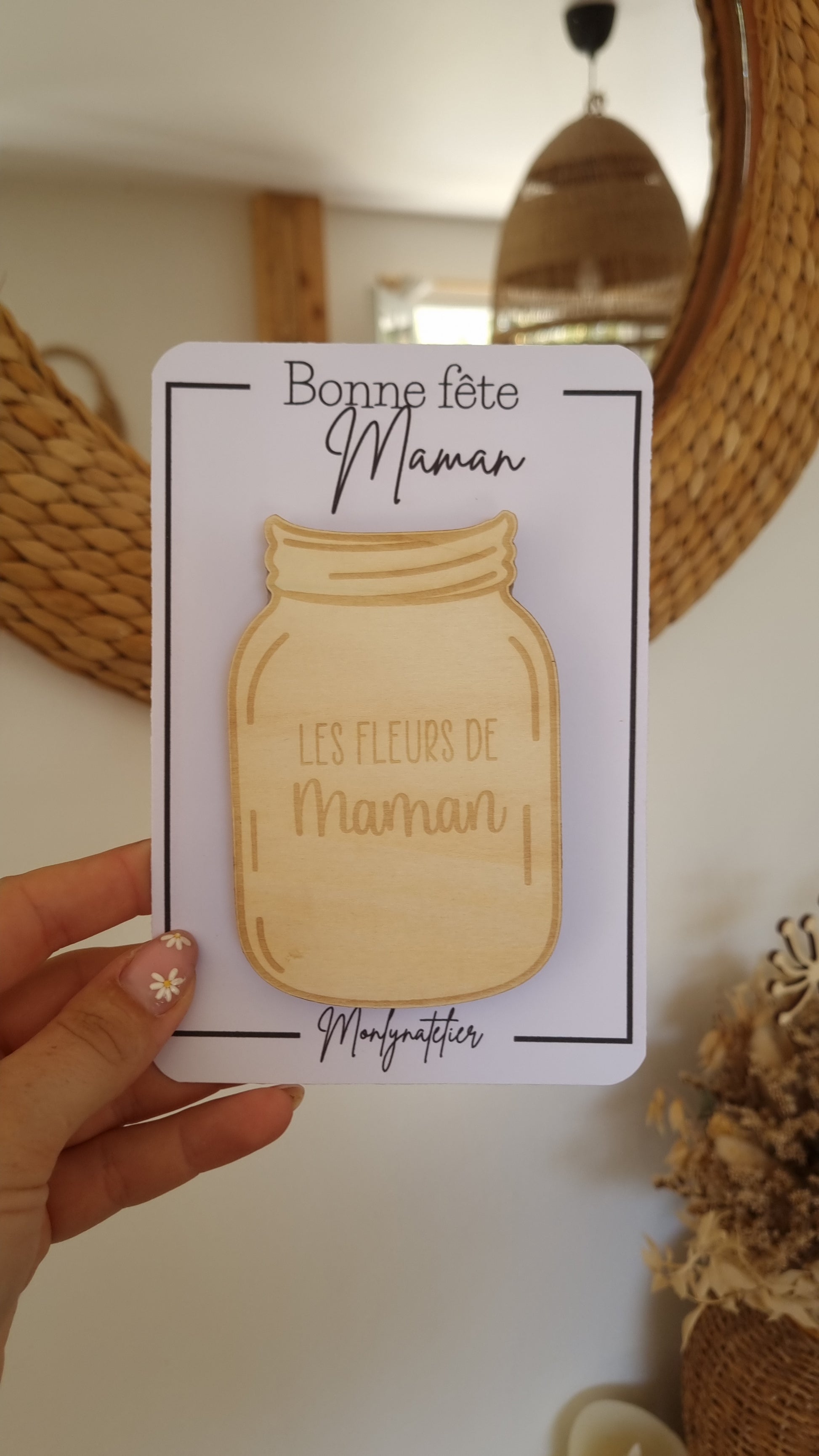 Pot de fleurs en bois à aimanter – Cadeau tendre pour la Fête des Mamans