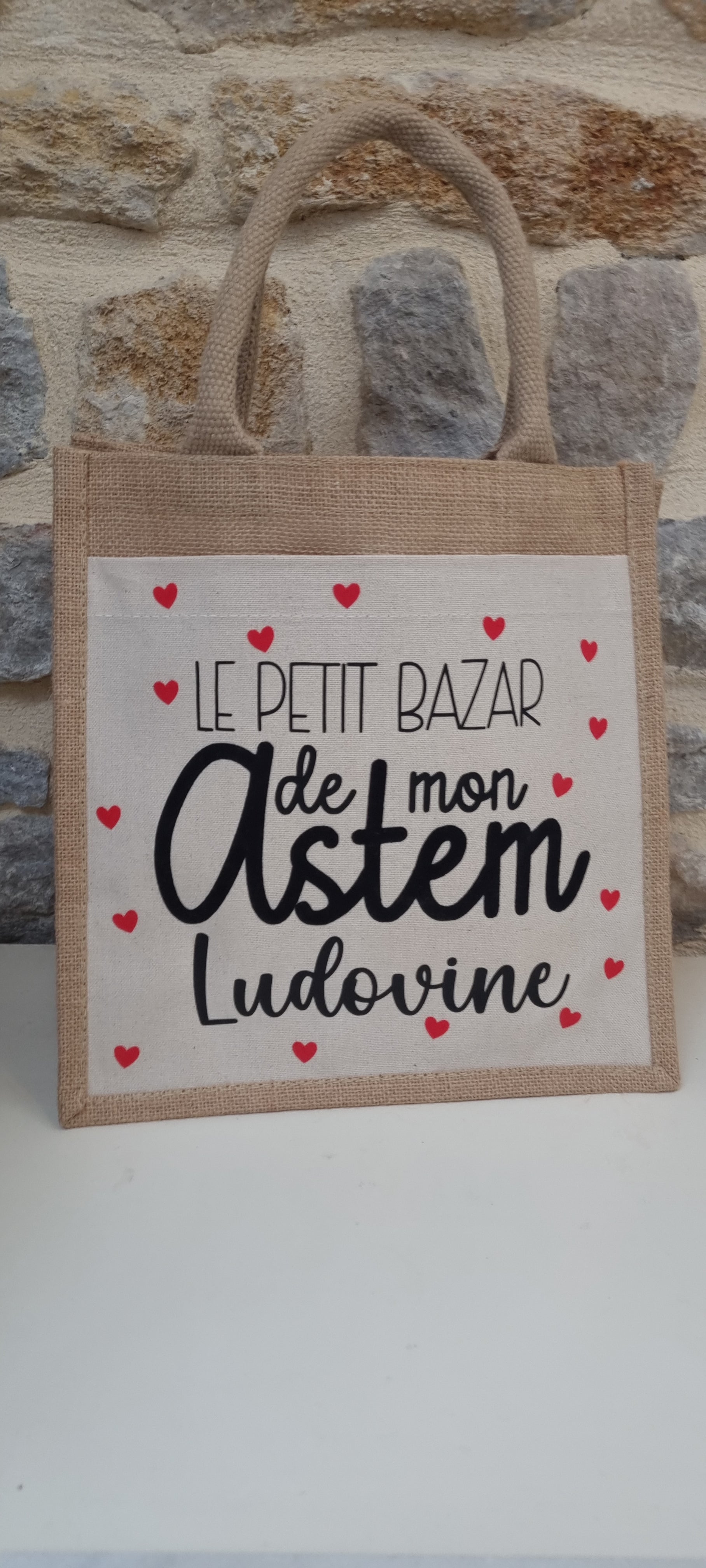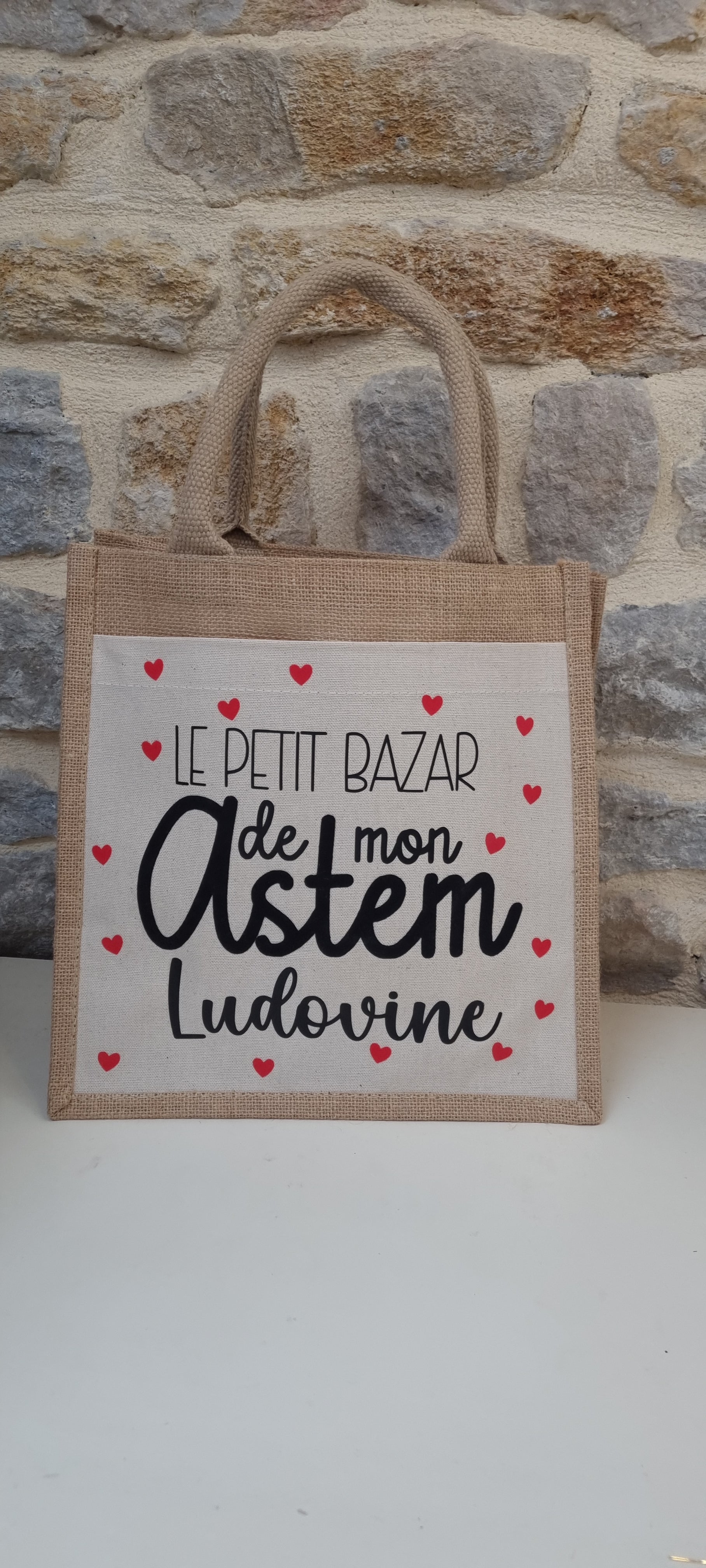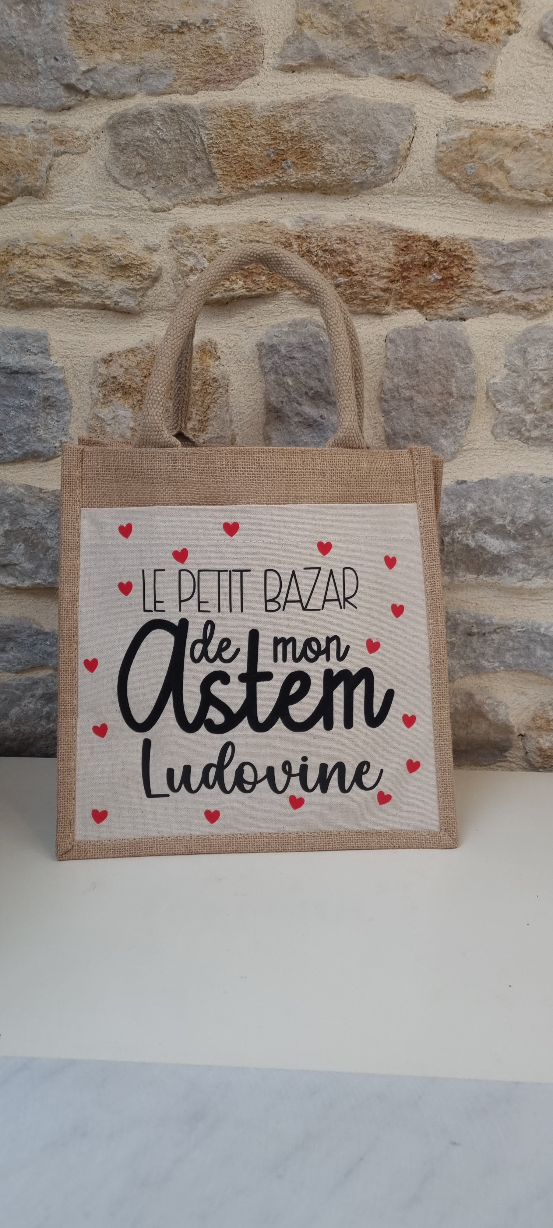 Offrez un cadeau à la fois utile, joli et personnalisé à la maîtresse de votre enfant avec notre sac cabas en toile de jute , orné d'une poche en coton personnalisable . Un présent parfait pour lui dire merci avec le cœur.