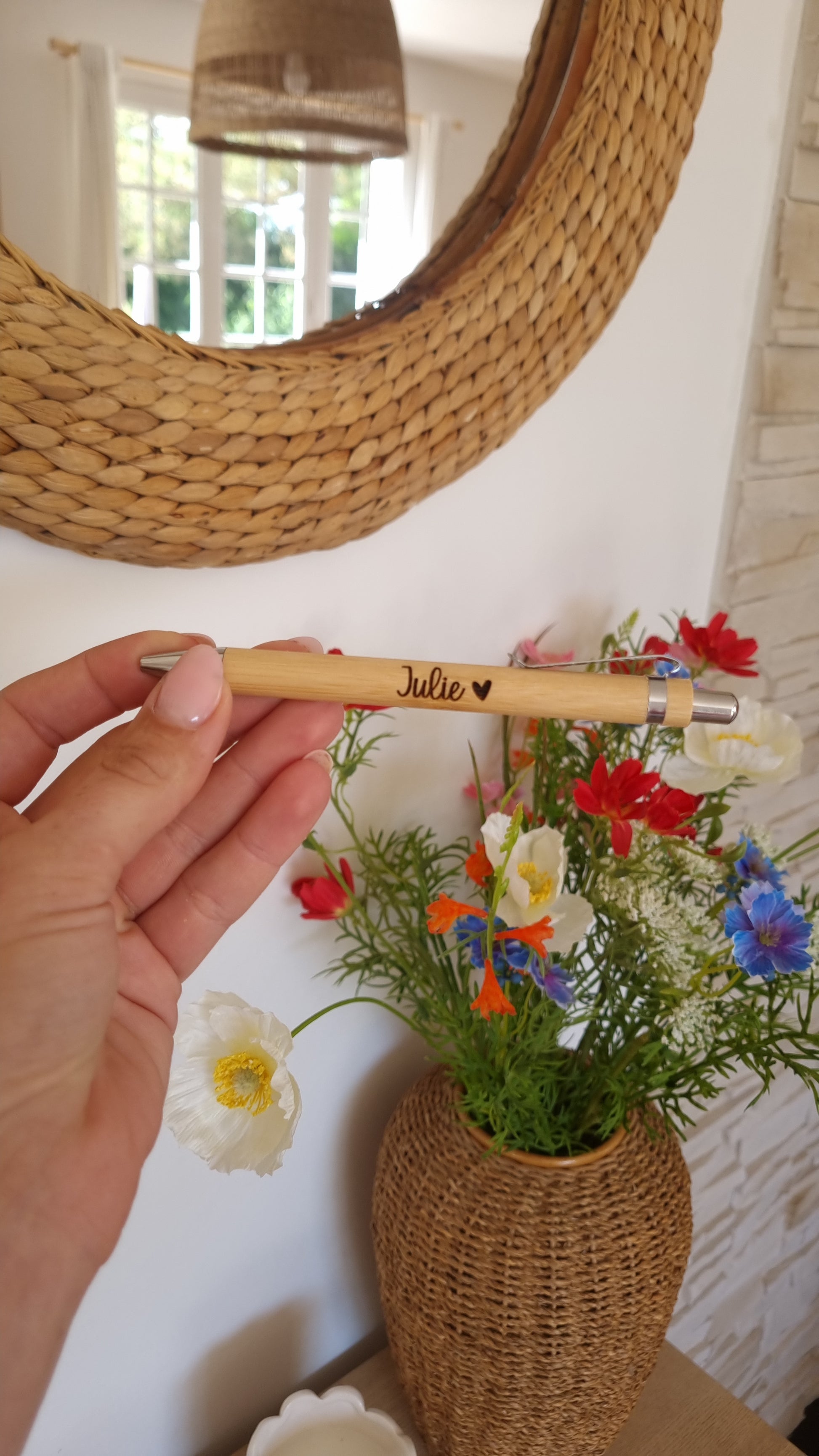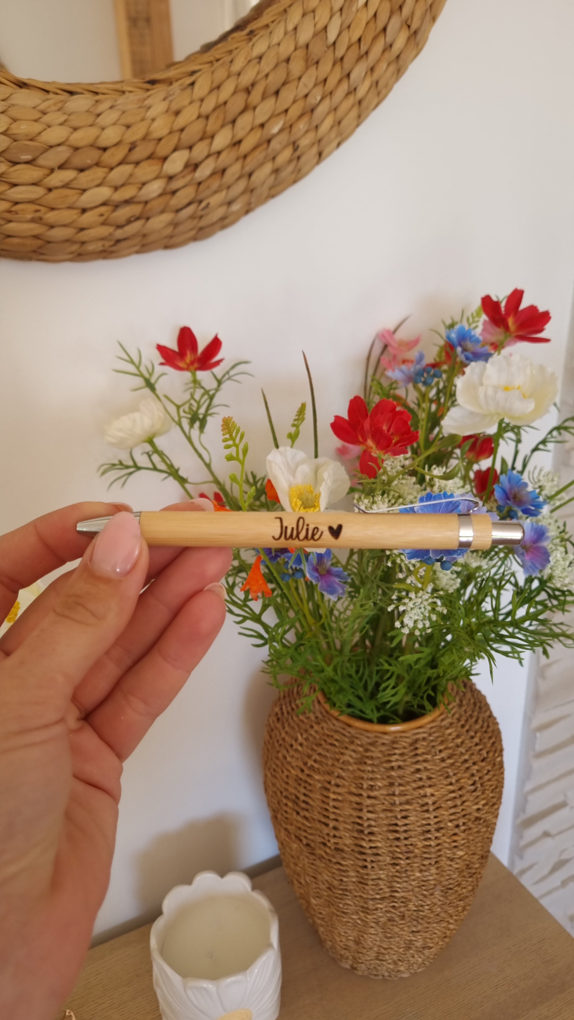 Laissez votre empreinte avec élégance grâce à notre stylo en bois personnalisé. À la fois raffiné et intemporel, il est parfait pour ajouter une touche unique à chaque signature.